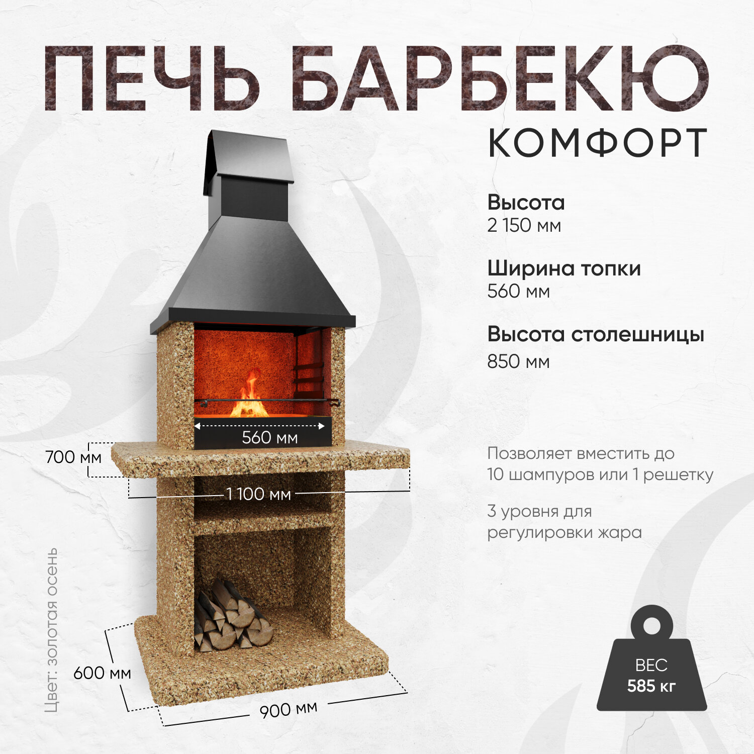 Ниже Вы можете прочитать отзывы на Печь-барбекю Комфорт, с мангалом 56 см, фактура Золотая осень, ознакомится с подробными характеристиками, посмотреть интересные обзоры и фотографии на Печь-барбекю Комфорт, с мангалом 56 см, фактура Золотая осень.