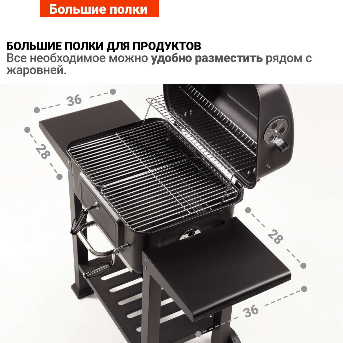 | Особенности | дровница / колёса / решетка / термометр |