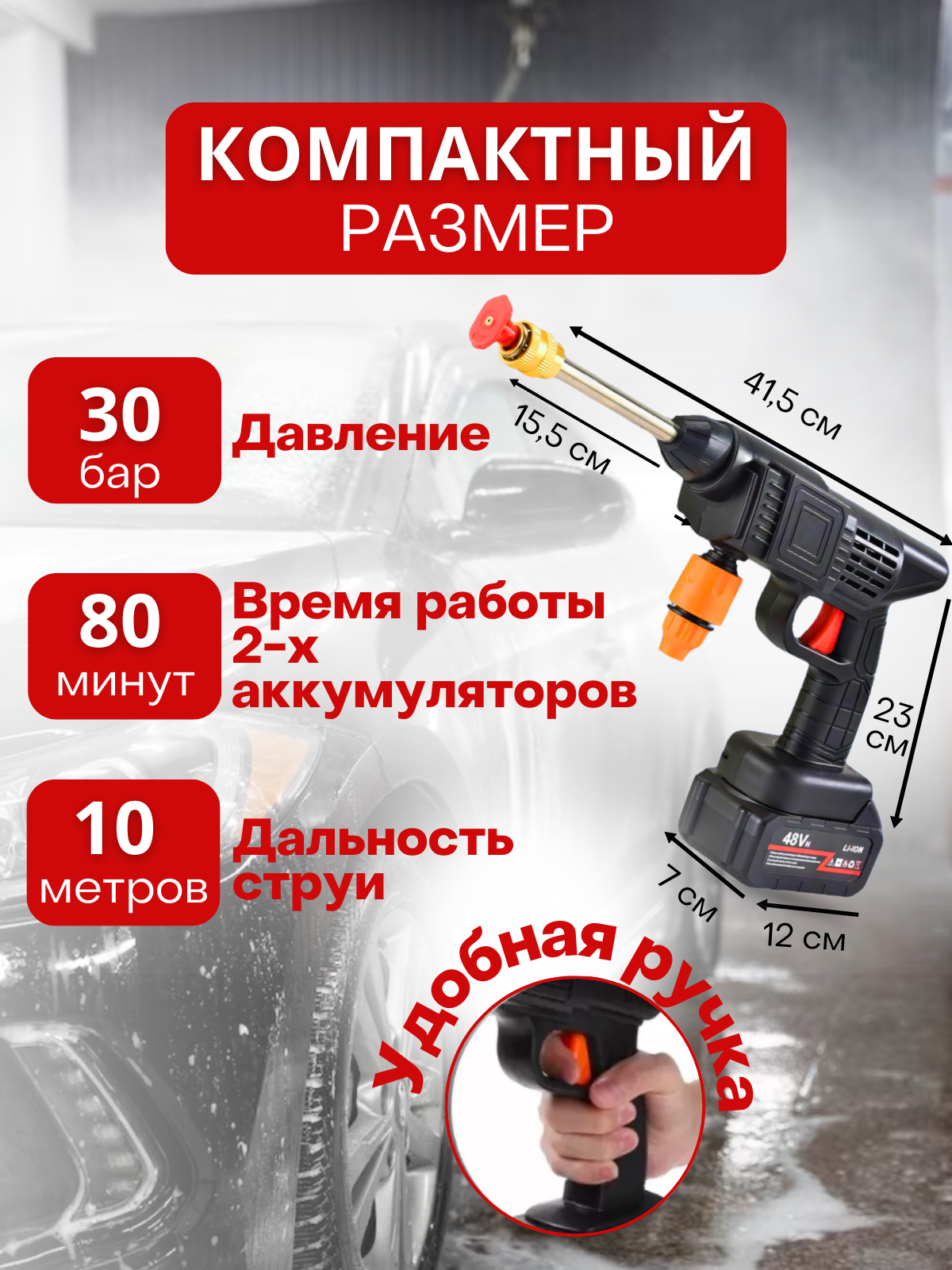 Мойка аккумуляторная автомобильная/ Мойка для автомобиля 1 аккумулятор/ Тряпка из микрофибры в подарок