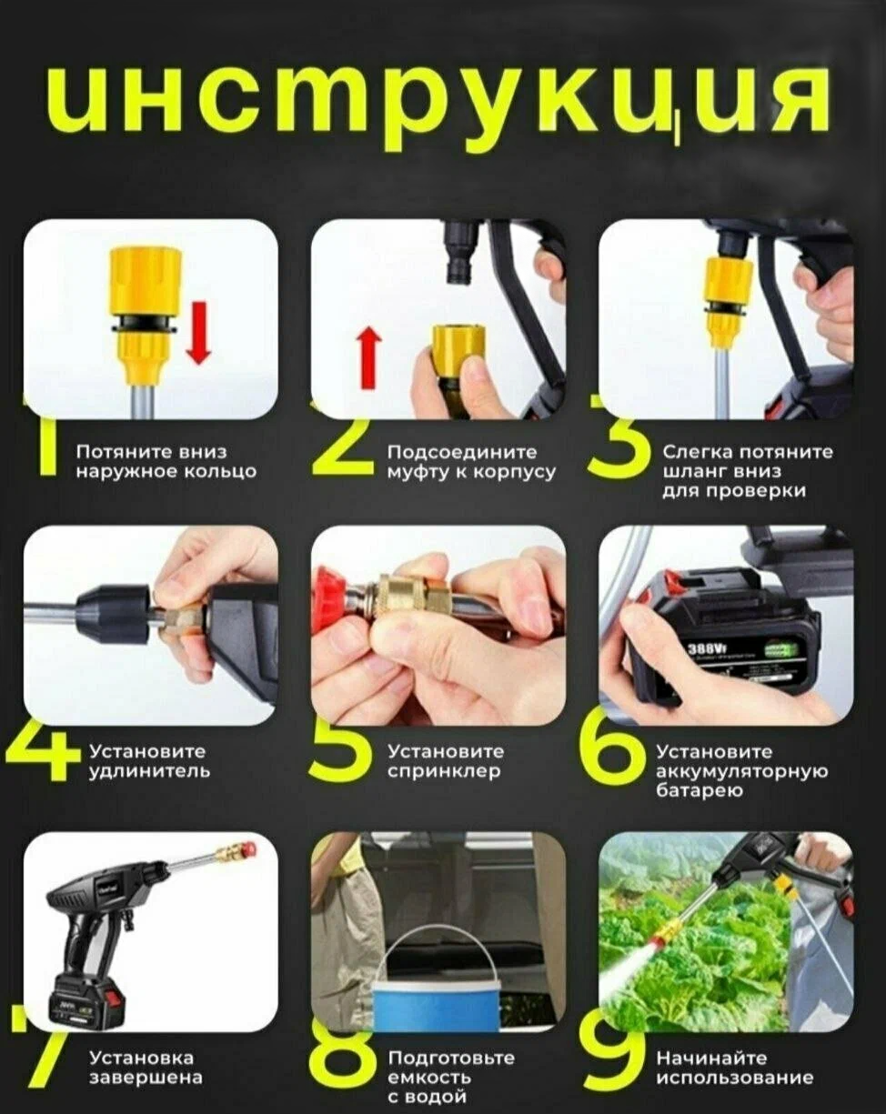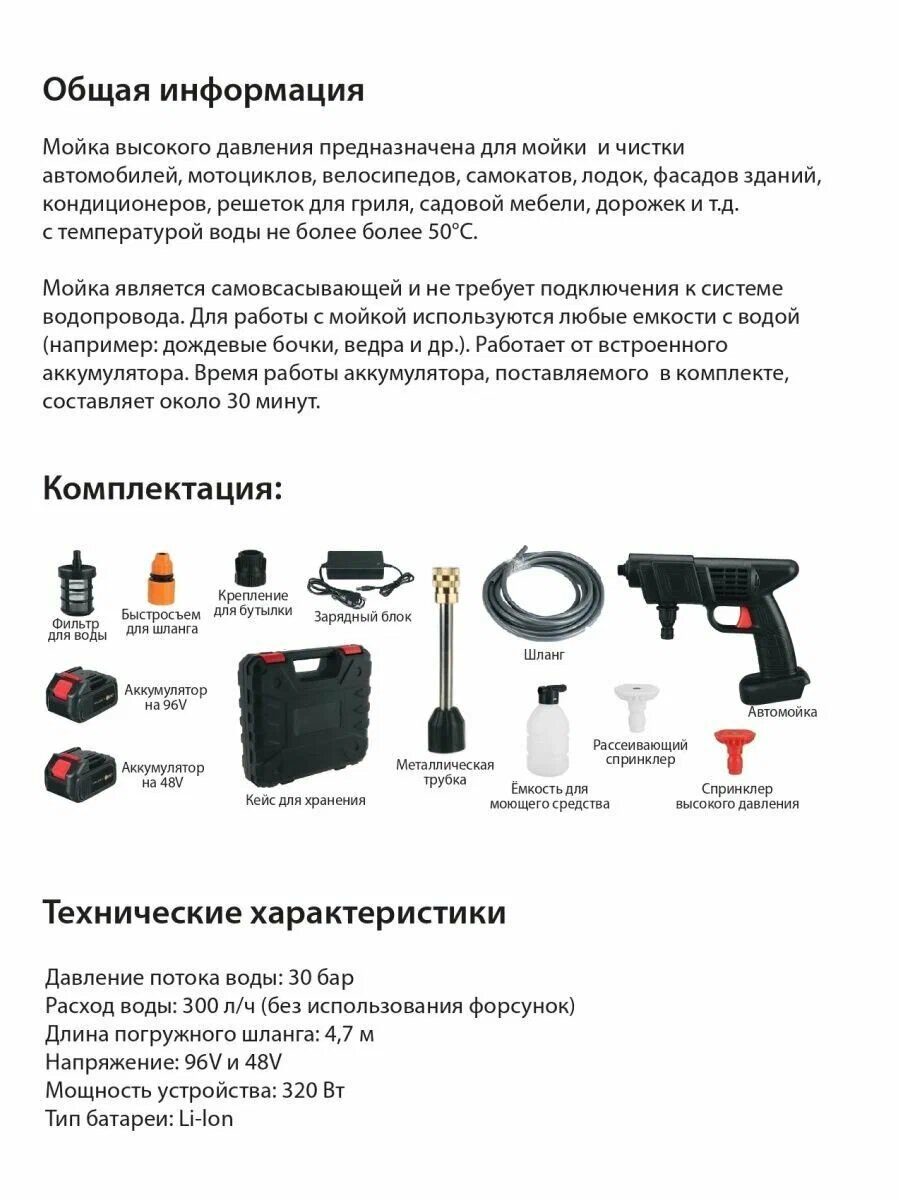Беспроводная мойка высокого давления c аккумулятором 12В интересное: