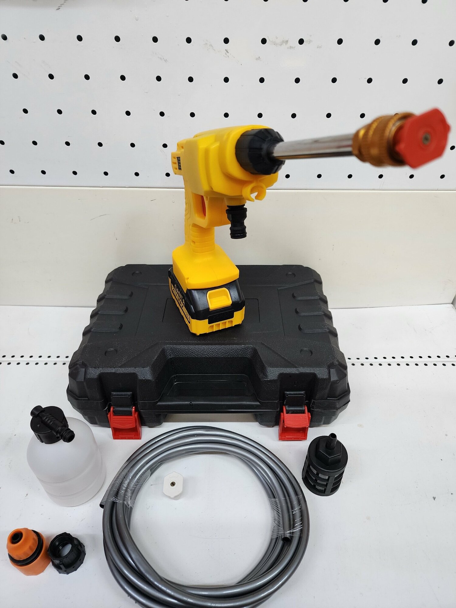 | Подробная комплектация | Мойка аккумуляторная; Короткая насадка; Длинная насадка; Li-ion аккумулятор 2шт 4 Ач; Руководство по эксплуатации; Кейс; Фильтр; Пенная насадка |