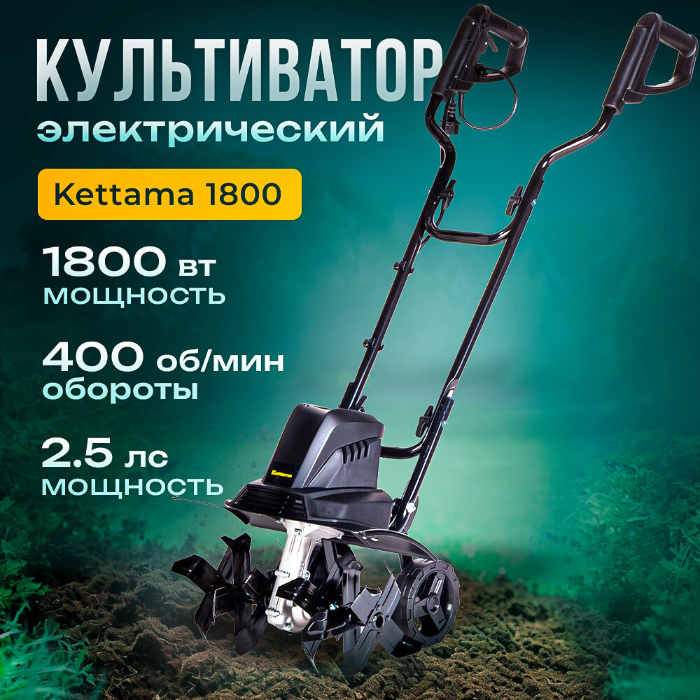 Электрический культиватор Kettama "ECO" 1800 W, глубина вспахивания 21 см, ширина обработки 40 см