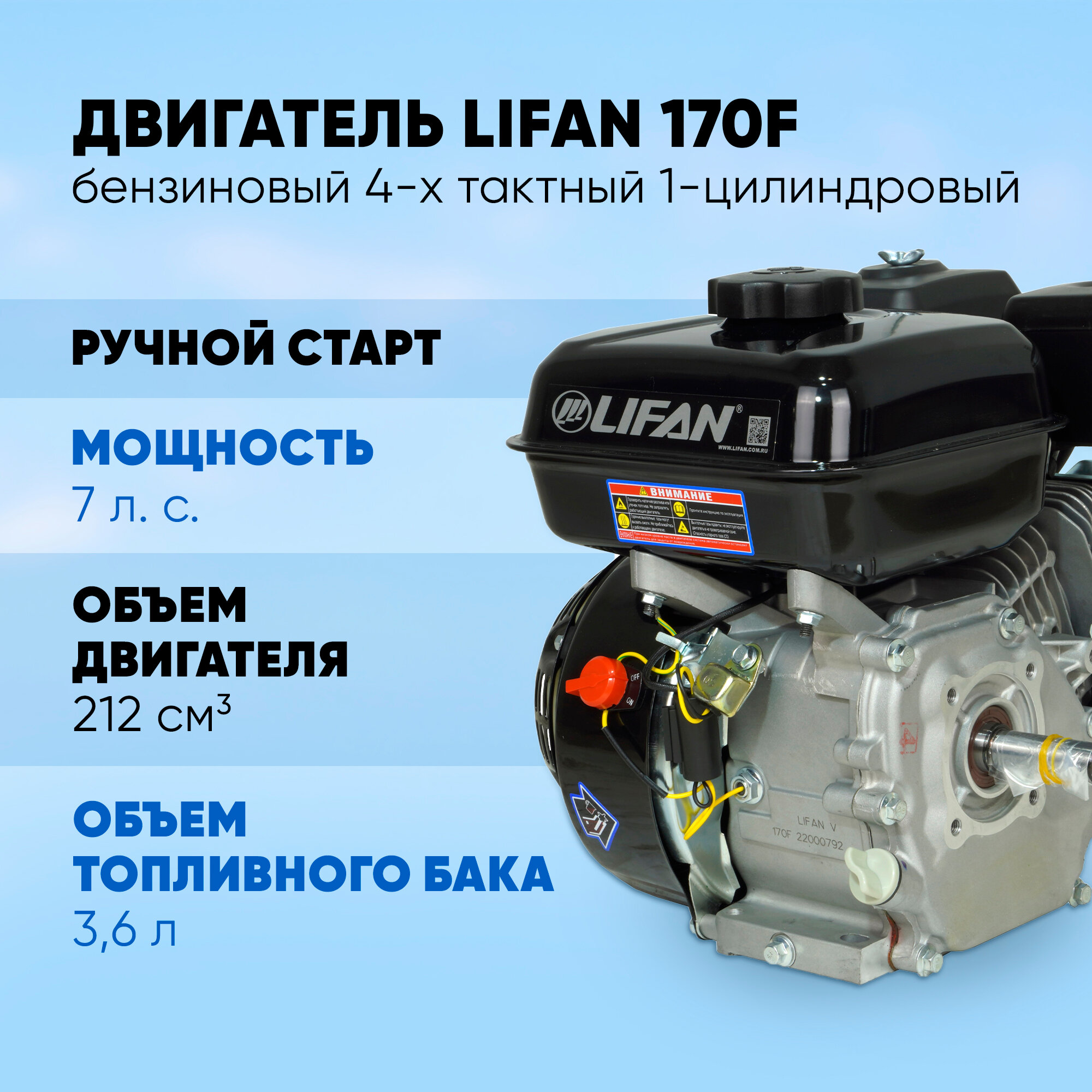 Купить Мотоблок бензиновый Агат Л7-П (двигатель Lifan 170F, 7л.с., 2 передачи вперед, 1 передача назад)