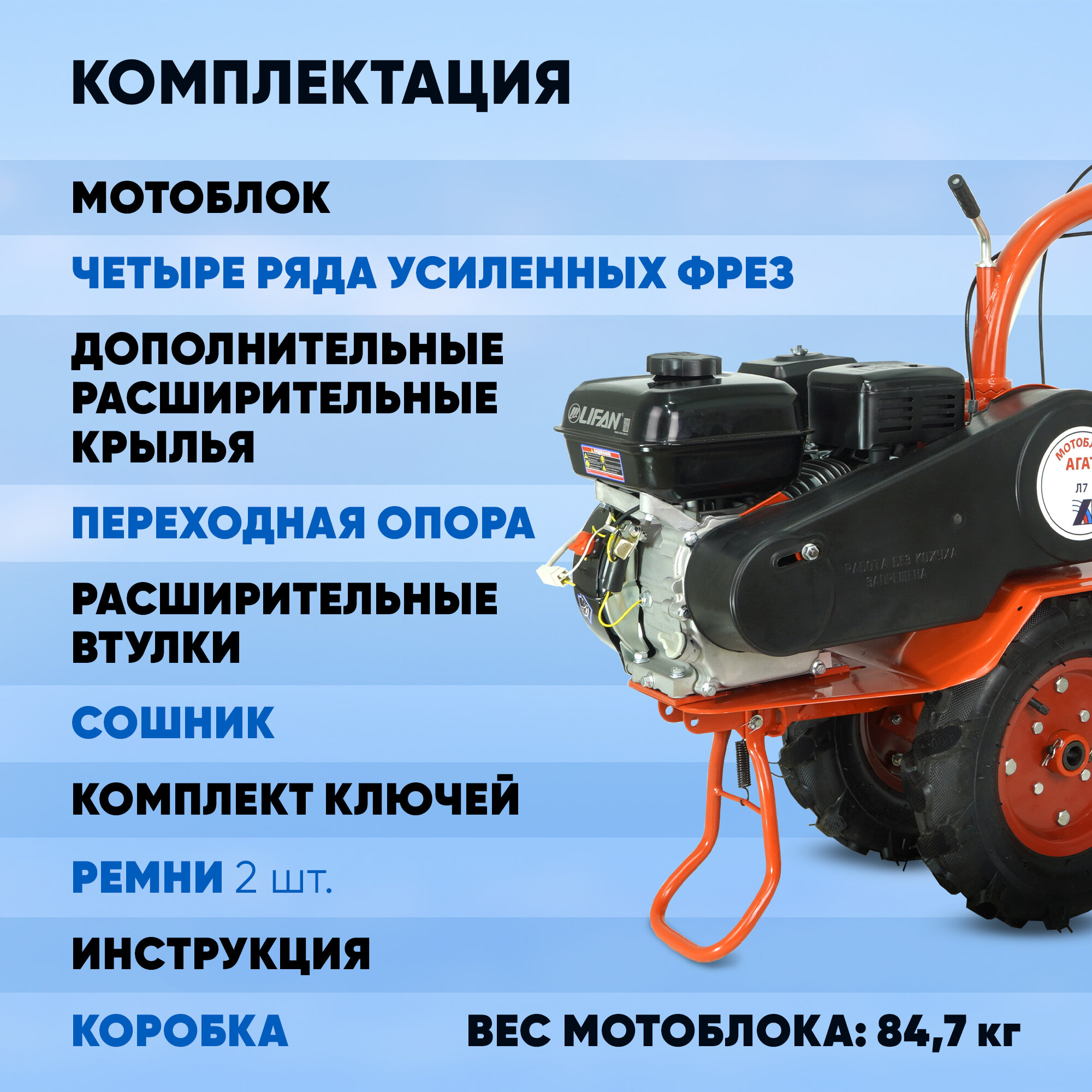 Ниже Вы можете прочитать отзывы на Мотоблок бензиновый Агат Л7-П (двигатель Lifan 170F, 7л.с., 2 передачи вперед, 1 передача назад), ознакомится с подробными характеристиками, посмотреть интересные обзоры и фотографии на Мотоблок бензиновый Агат Л7-П (двигатель Lifan 170F, 7л.с., 2 передачи вперед, 1 передача назад).