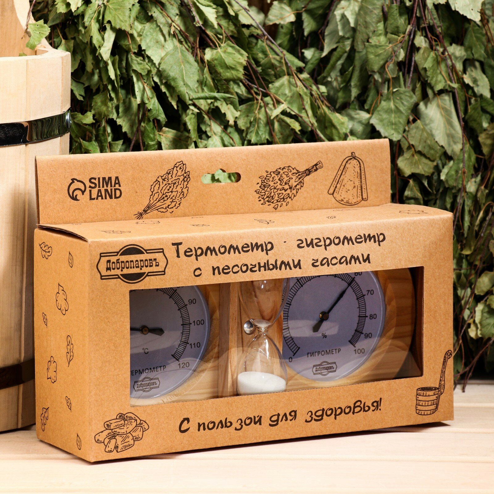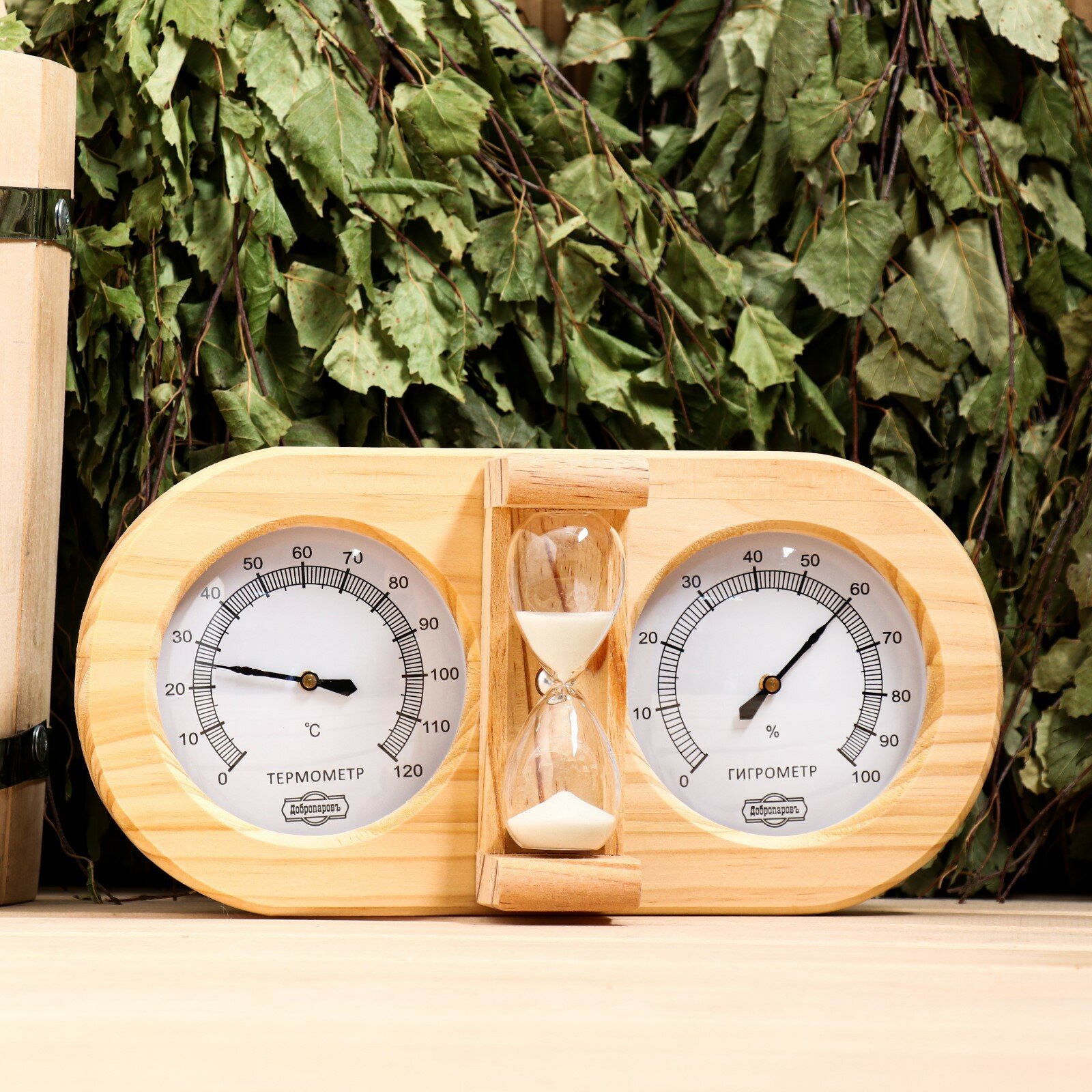 Добропаровъ Термометр-гигрометр для бани с песочными часами, деревянный интересное: