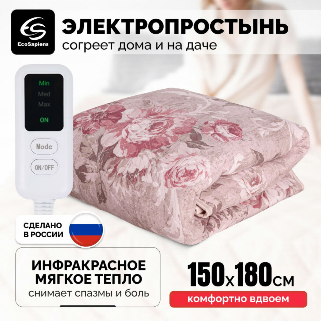 Электропростыня EcoSapiens Согревай-ка электрическая простынь с подогревом, 3 программы до 6 часов работы, автоотключение, 150х120 см