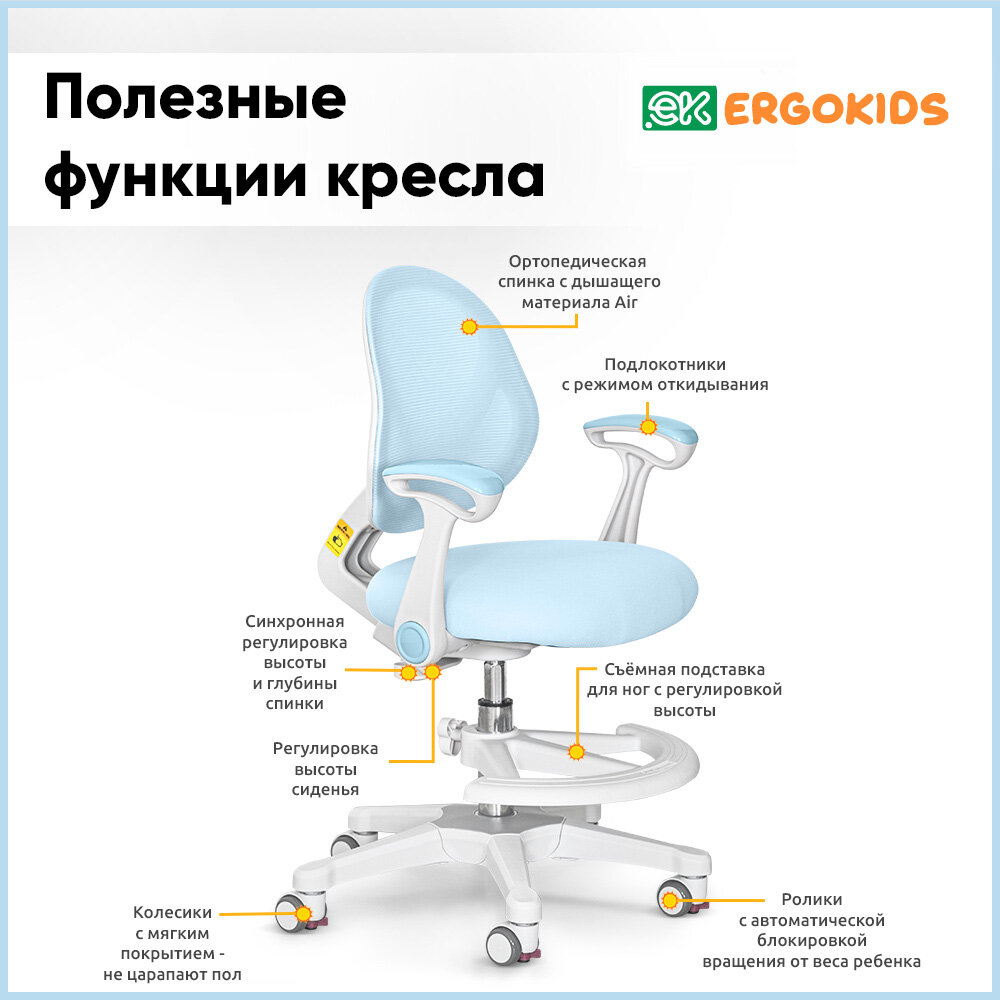 СохранитьРастущее детское кресло для дома Mio Air BL (арт. Y-400 BL (arm)) для обычных и растущих парт + подлокотники + подставка для ног + чехол на сиденье интересное: