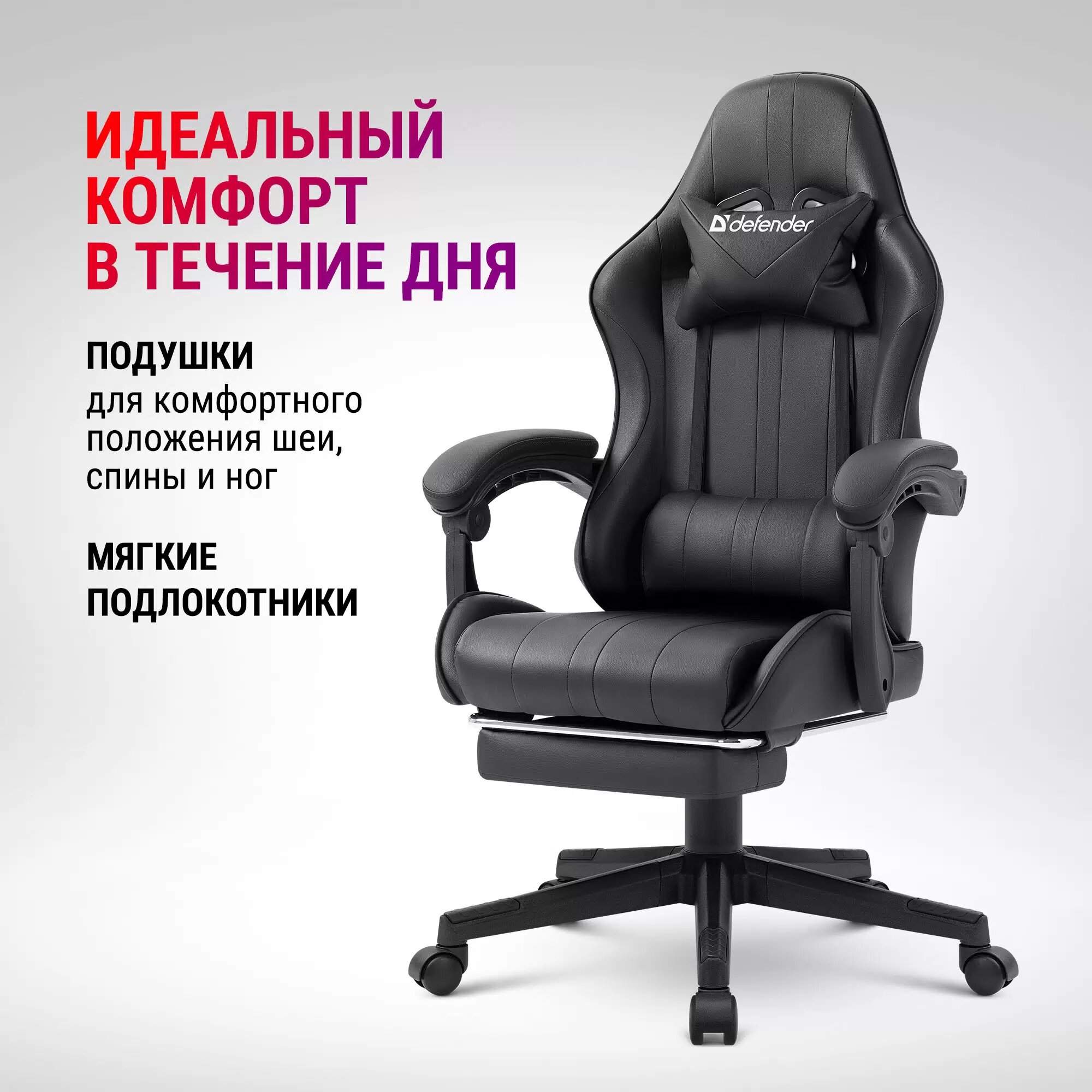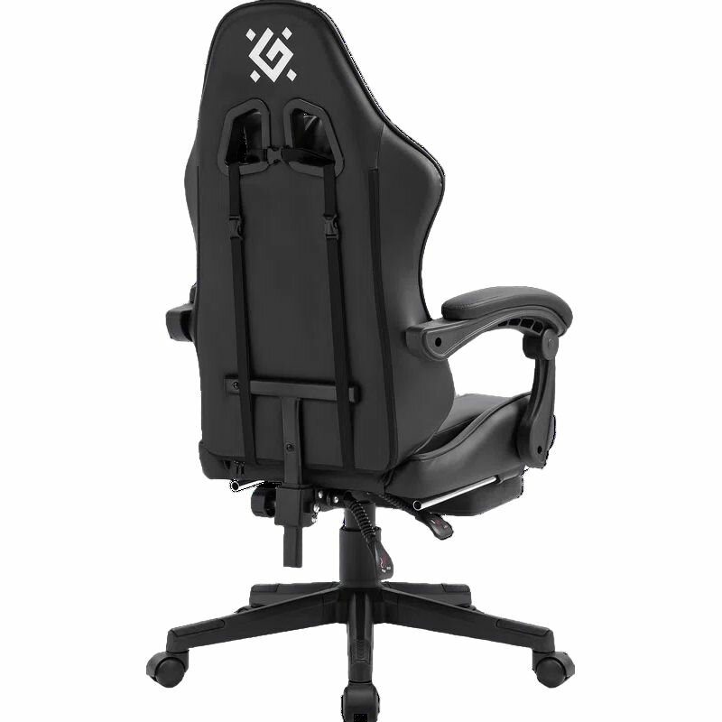 Компьютерное игровое кресло Defender Rock из эко-кожи с регулировкой высоты и подставкой для ног, на металлической раме, 2 подушки.