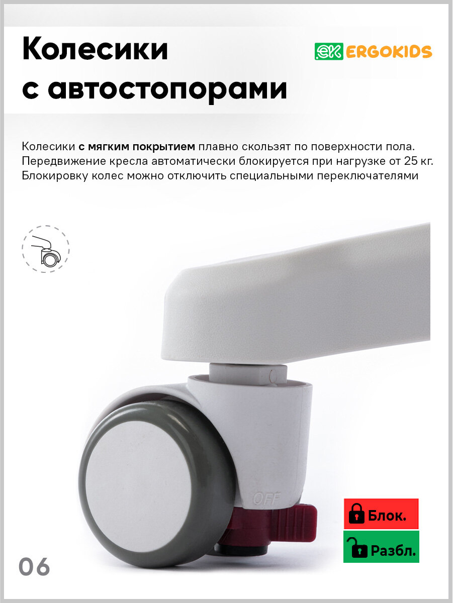 | Функциональные особенности | блокировка колес, мягкое сиденье, прорезиненные колесики, спинка из сетки |