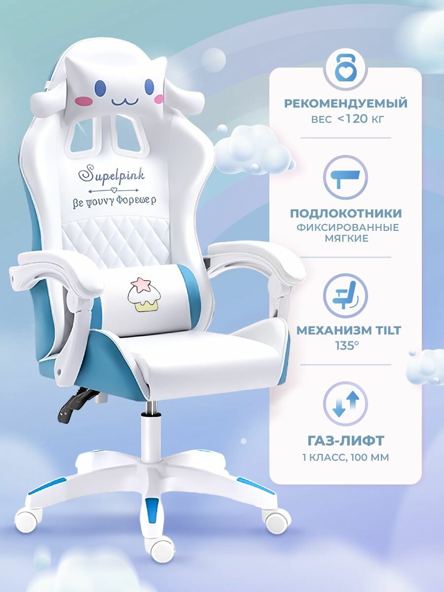 Купить Кресло компьютерное игровое геймерское Classmark FT-1502 офисное с подушками для спины и шеи на колесиках, бело-синее
