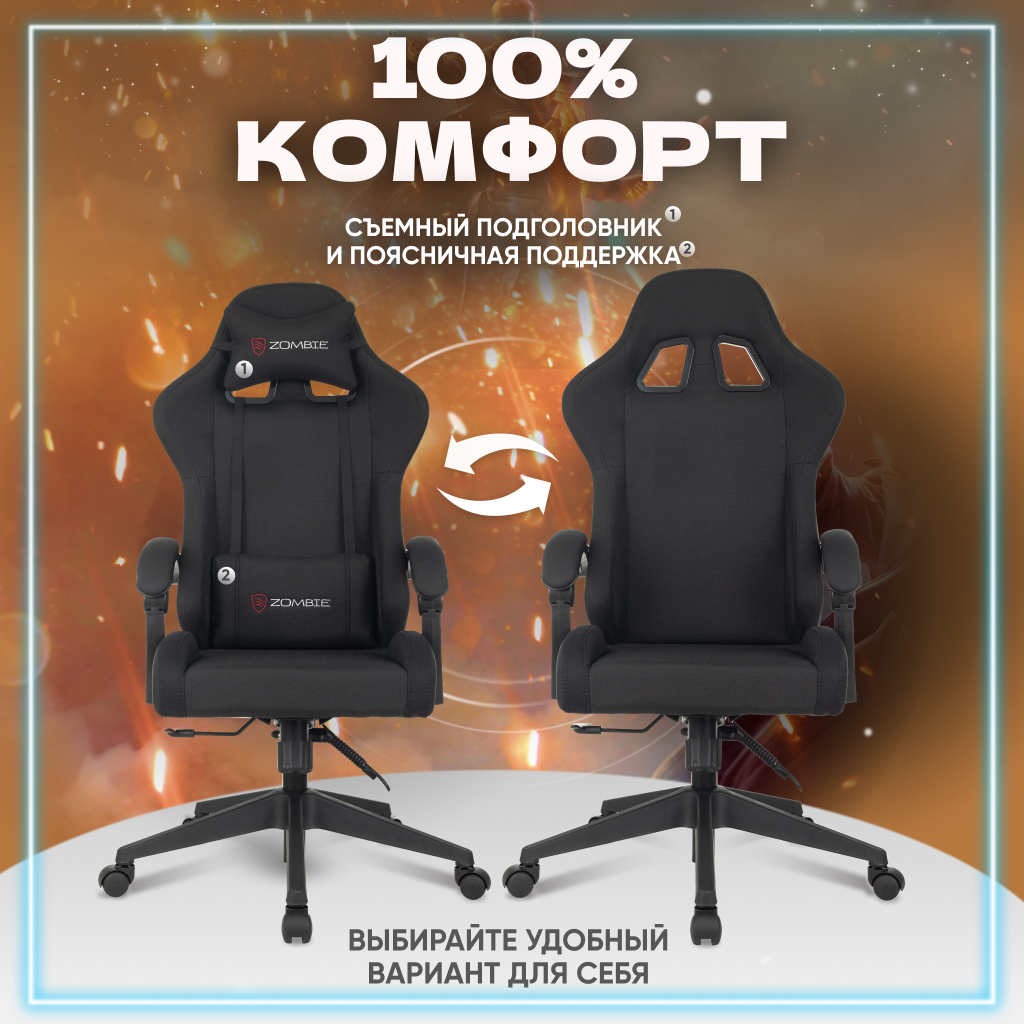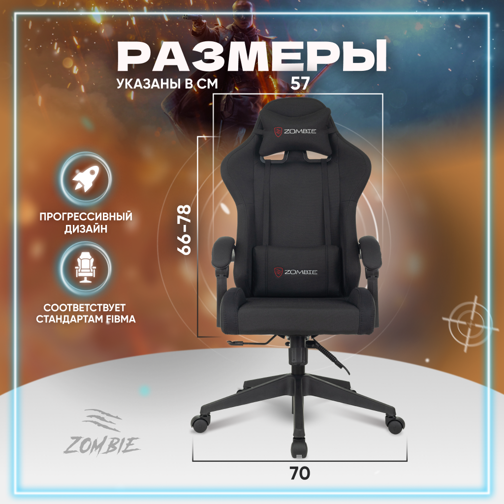 Кресло компьютерное игровое офисное для геймеров Бюрократ с подголовником, текстиль, ZOMBIE GAME RGB