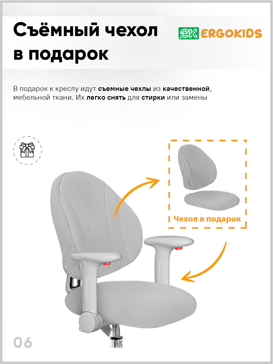 Растущее компьютерное детское кресло с подлокотниками Ergokids Mio Y-407 оранжевое
