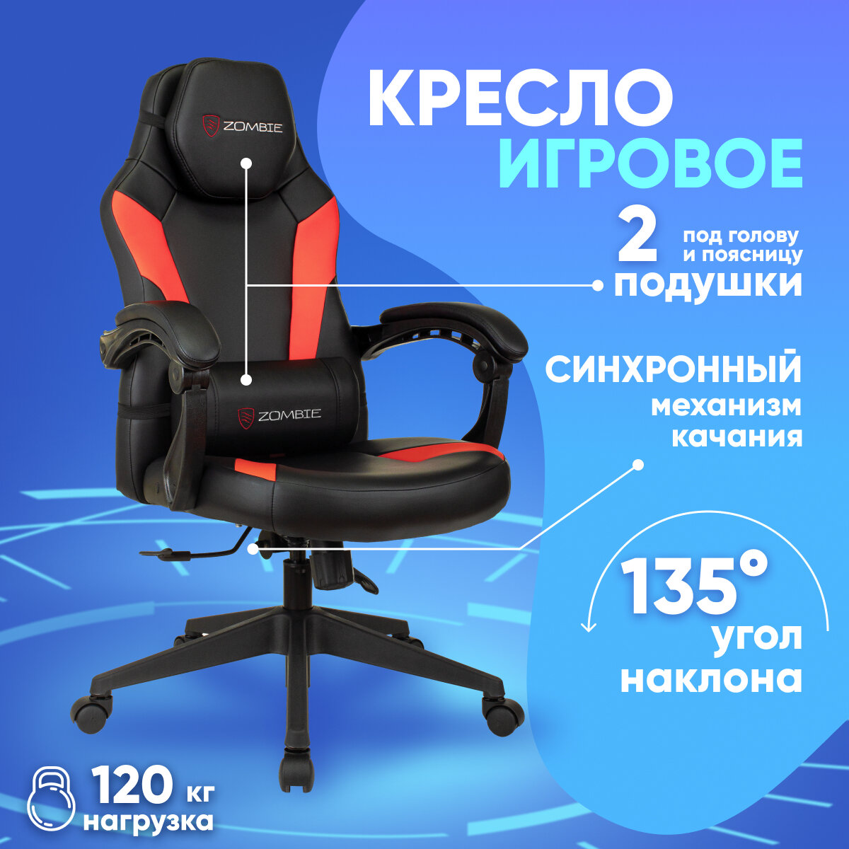 Кресло игровое Zombie Defender черный/красный эко.кожа крестов. пластик интересное: