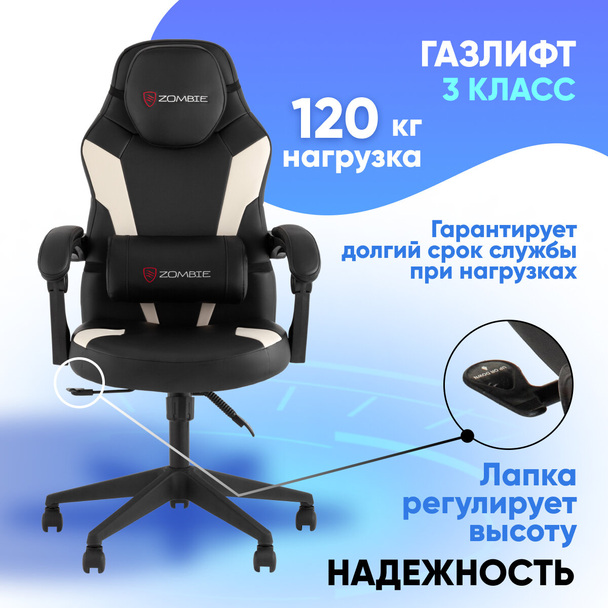 Кресло игровое Zombie Defender черный/белый эко.кожа крестов. пластик интересное:
