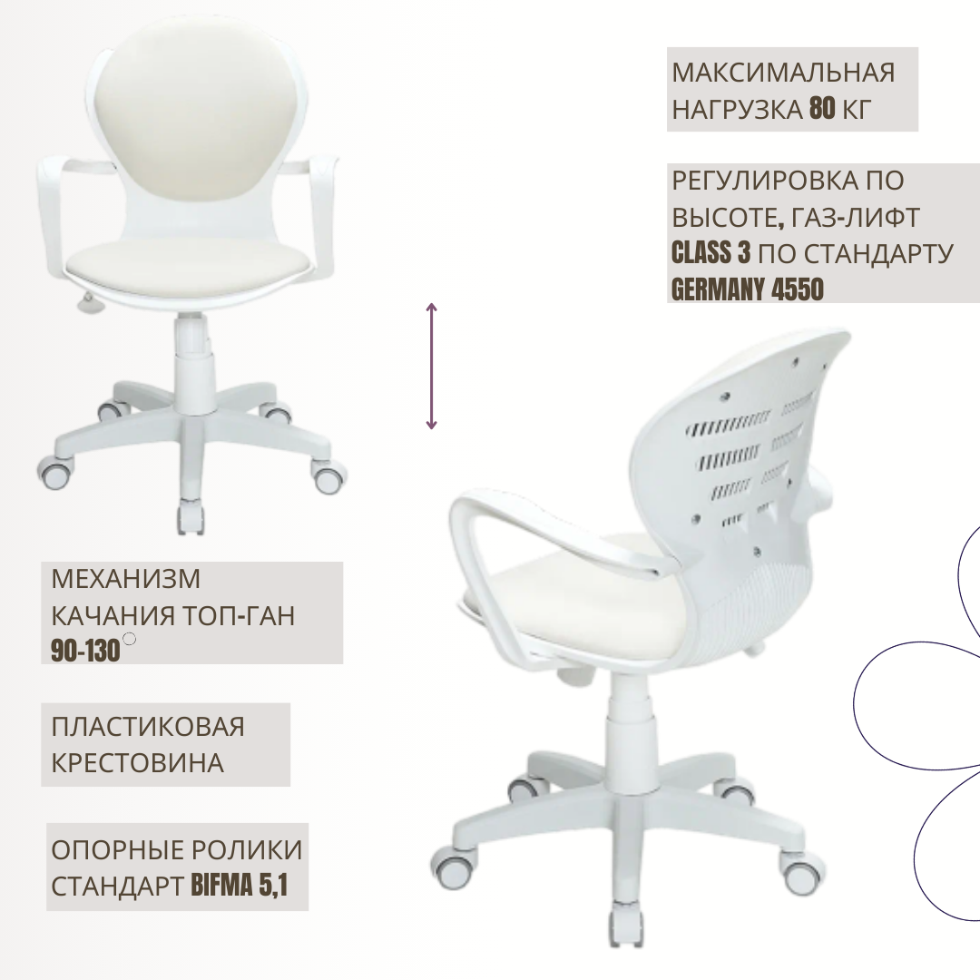 СохранитьДетское компьютерное кресло Bloom, кремовое / Компьютерное кресло для ребёнка, школьника, подростка интересное: