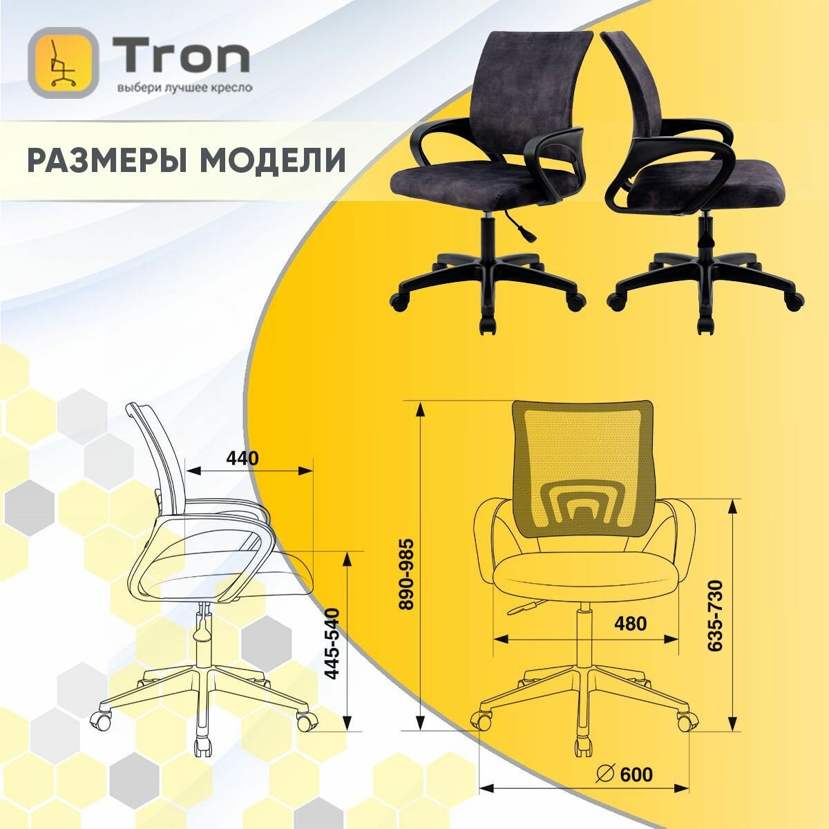 Кресло компьютерное офисное Tron А2 велюр RIO темно-серый Standard интересное: