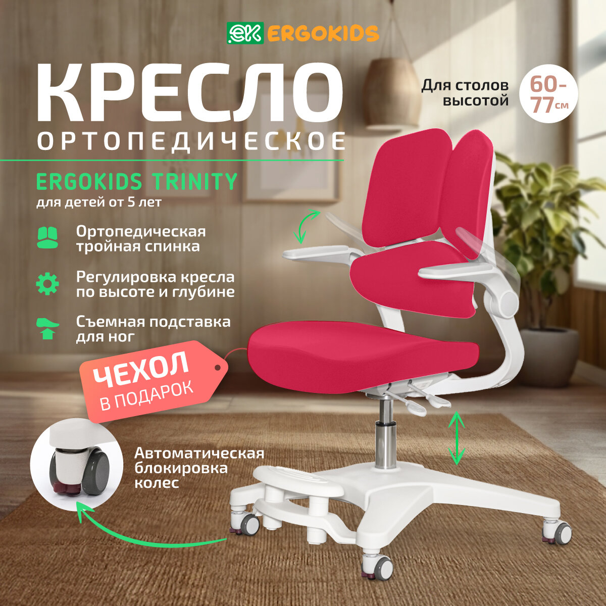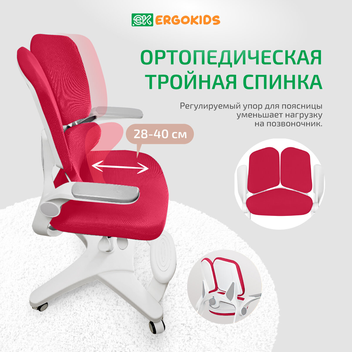Купить Растущее детское кресло для школьника ErgoKids Trinity Red (арт.Y-617 KR) для обычных и растущих парт с подлокотниками, подставкой для ног и чехлом