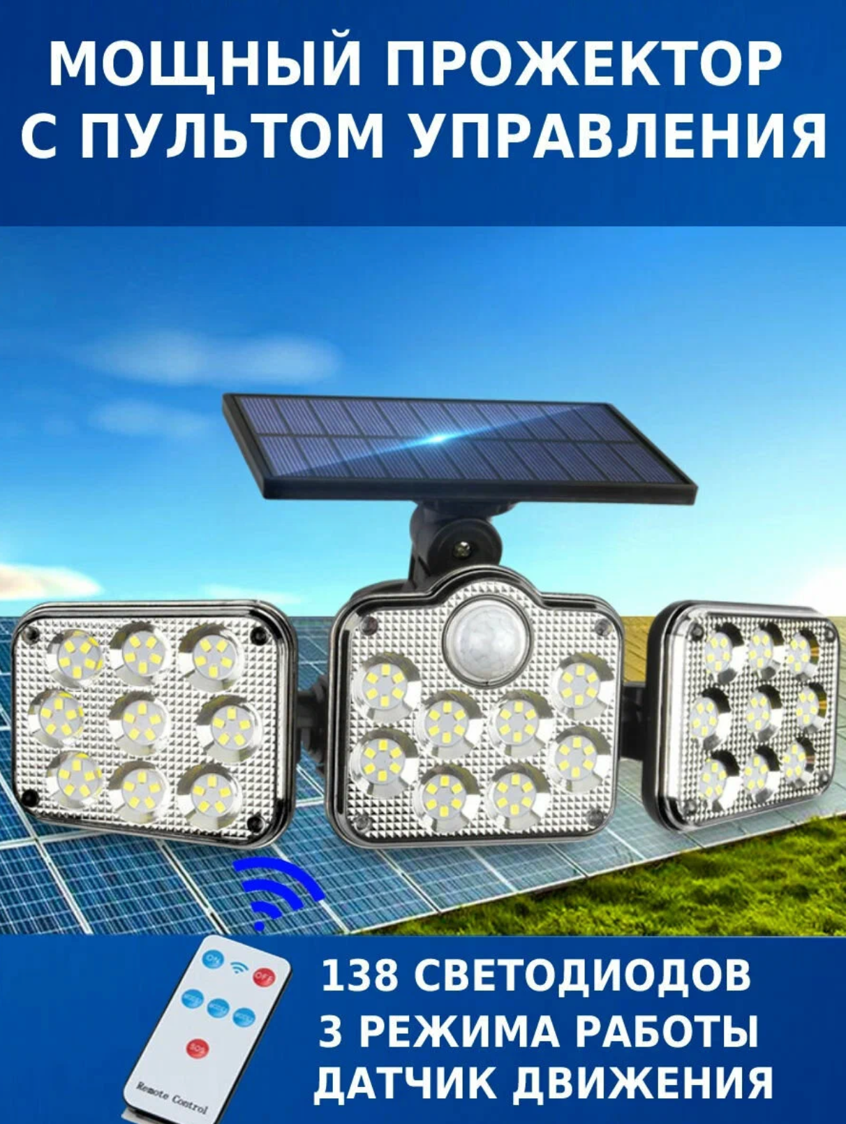 Уличный фонарь на солнечной батарее с датчиком движения, дачный фонарь, садовый уличный светильник 138LED + пульт интересное: