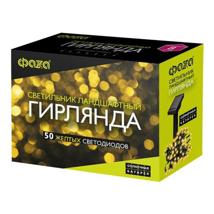 Купить Светильник светодиодный садовый SLR-G01- 50Y гирлянда 50 желт. LED на солнечн. батарее ФАZА 5027299