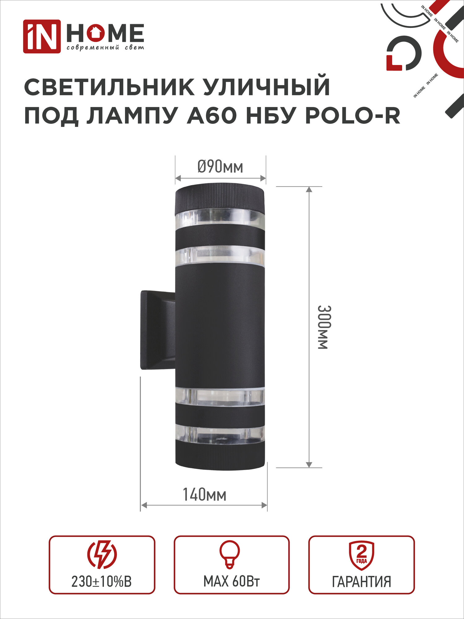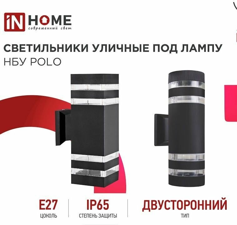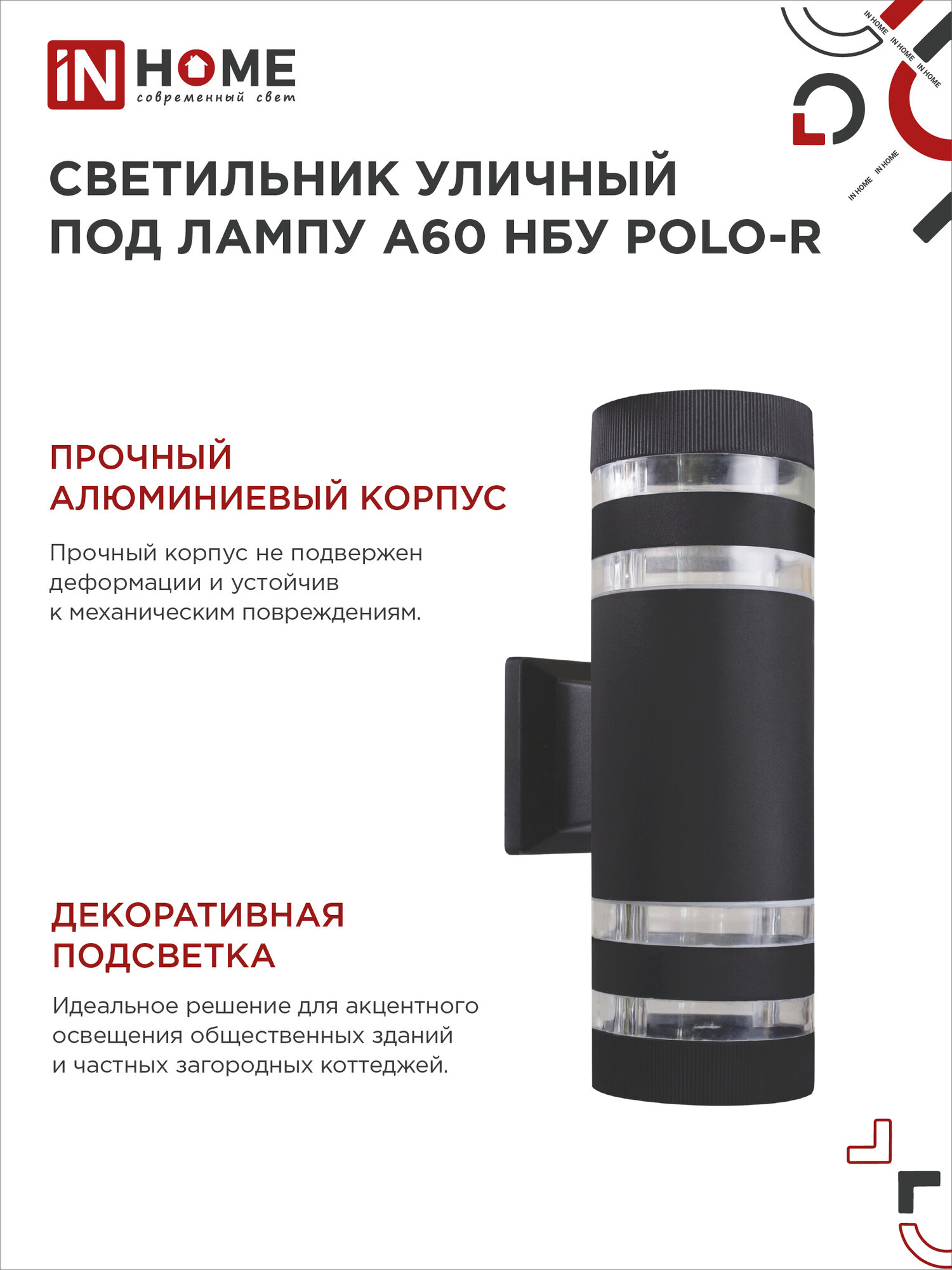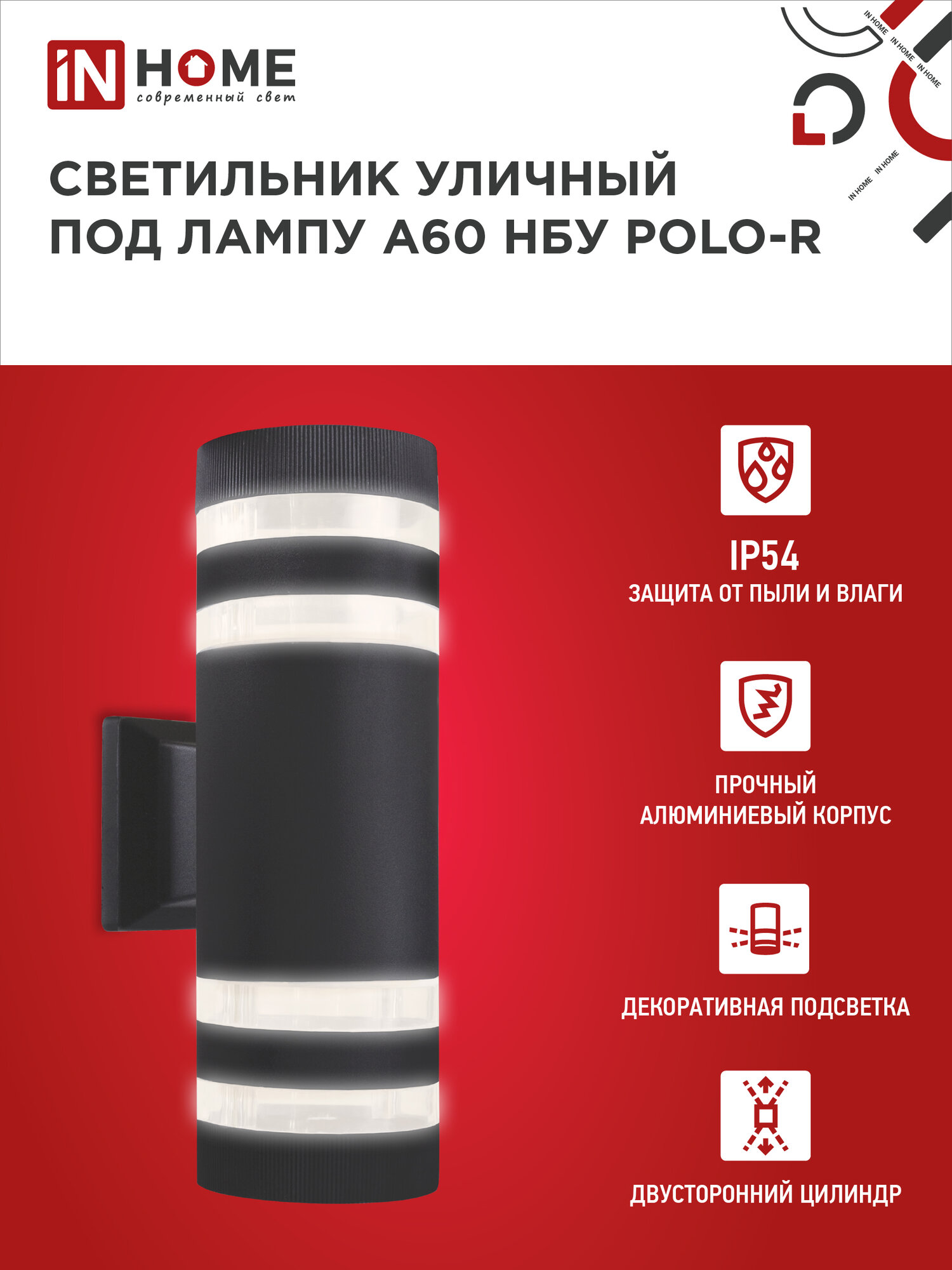 IN HOME Светильник уличный односторонний НБУ POLO-R-1xA60-BL алюм под 1xA60 E27 черн IP54 (арт. 4690612045061)