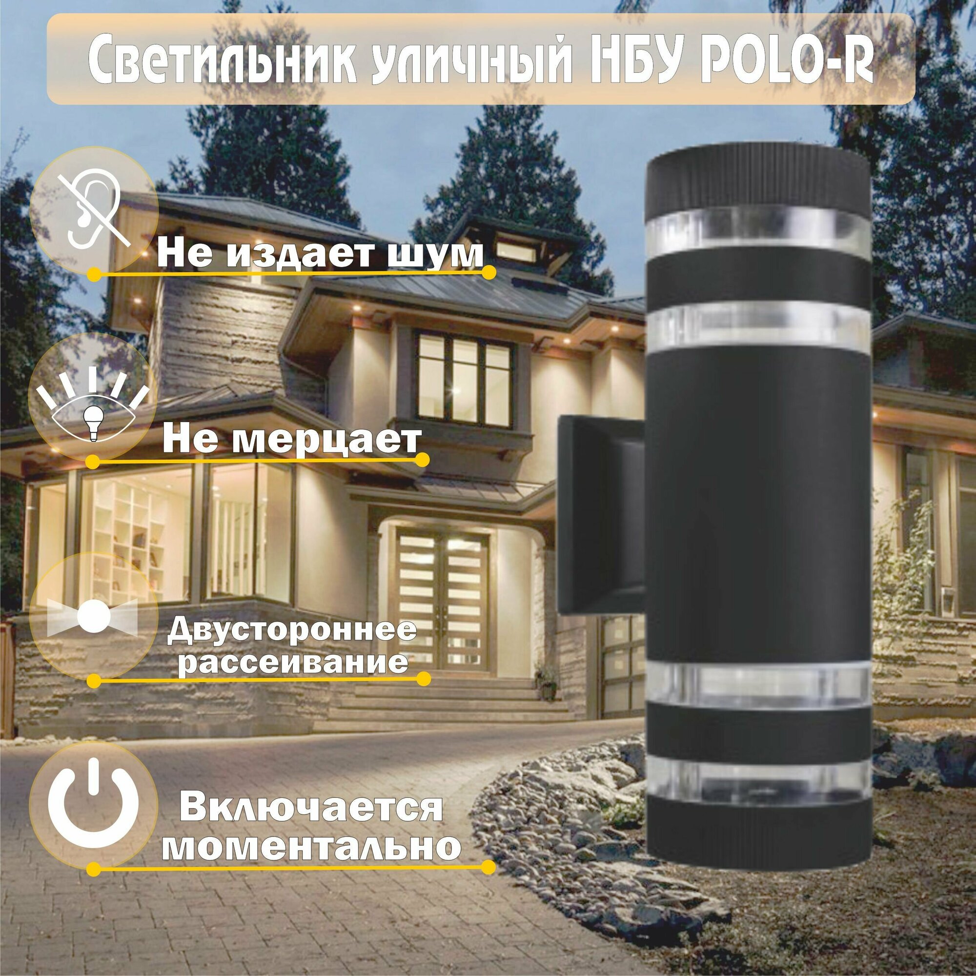 СохранитьСветильник НБУ POLO-R-2хA60-BL E27 IP65 230В уличный настенный двусторонний алюм. под лампу 2хA60 черн. IN HOME 4690612037943 интересное: