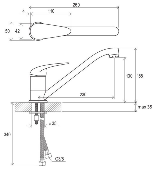 | Дополнительная информация | диаметр картриджа 35 мм; соединительные шланги: гибкий 350 мм, диаметр G3/8; исполнение: с поворачивающимся изливом 230 мм; гарантия на смесители: 5 лет |