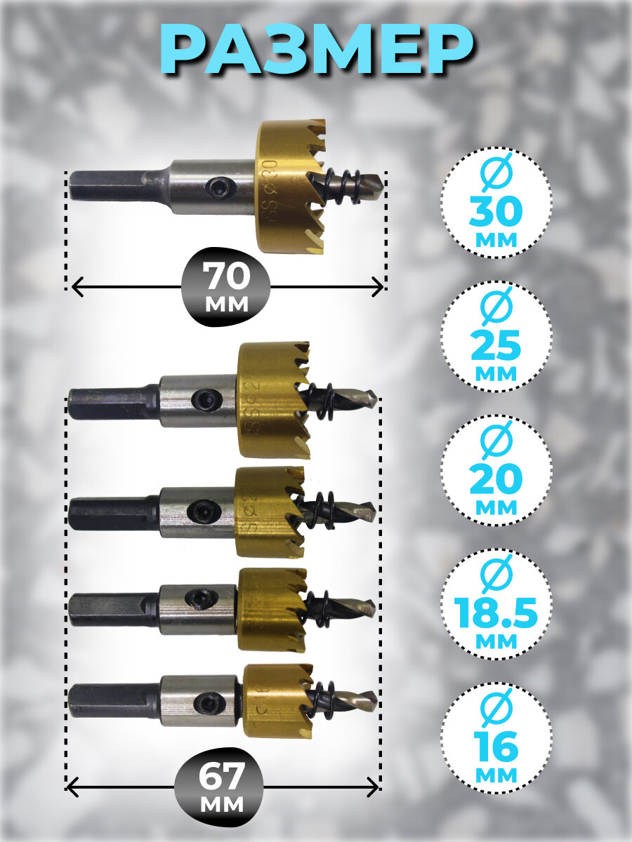 Набор кольцевых пил из быстрорежущей стали HSS 16-30 мм интересное: