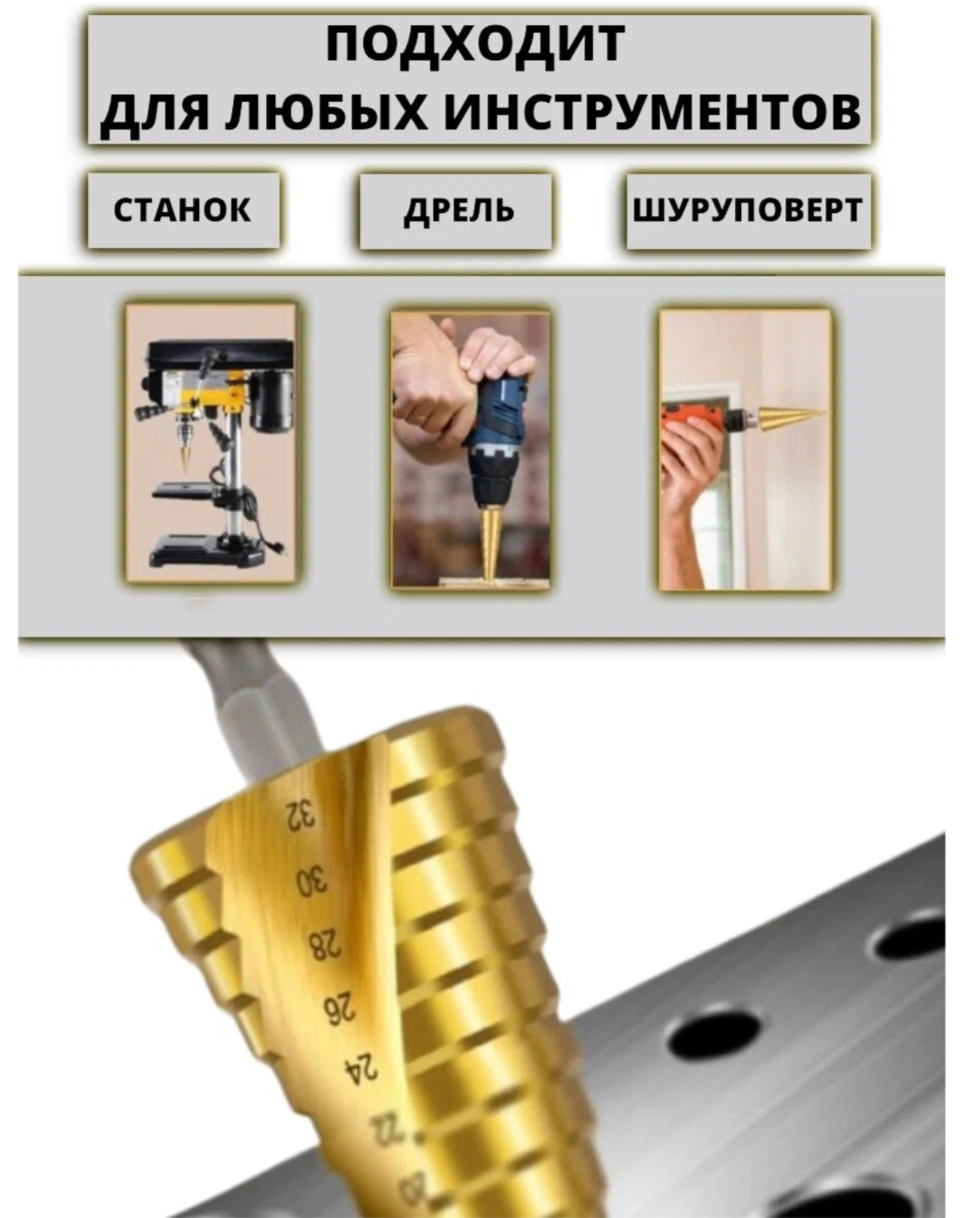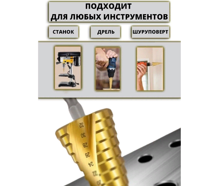 Ниже Вы можете прочитать отзывы на Набор ступенчатых сверл abc с титановым покрытием 3шт (4-12мм, 4-20мм, 4-32мм), ознакомится с подробными характеристиками, посмотреть интересные обзоры и фотографии на Набор ступенчатых сверл abc с титановым покрытием 3шт (4-12мм, 4-20мм, 4-32мм).