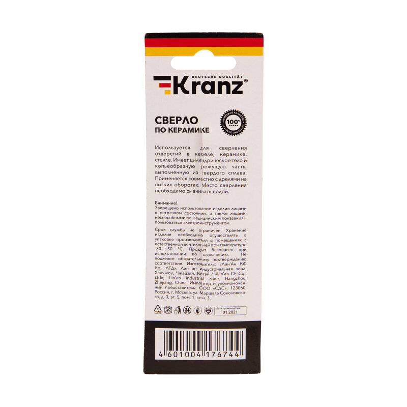 Купить Сверло по стеклу и керамике KRANZ KR-91-0650