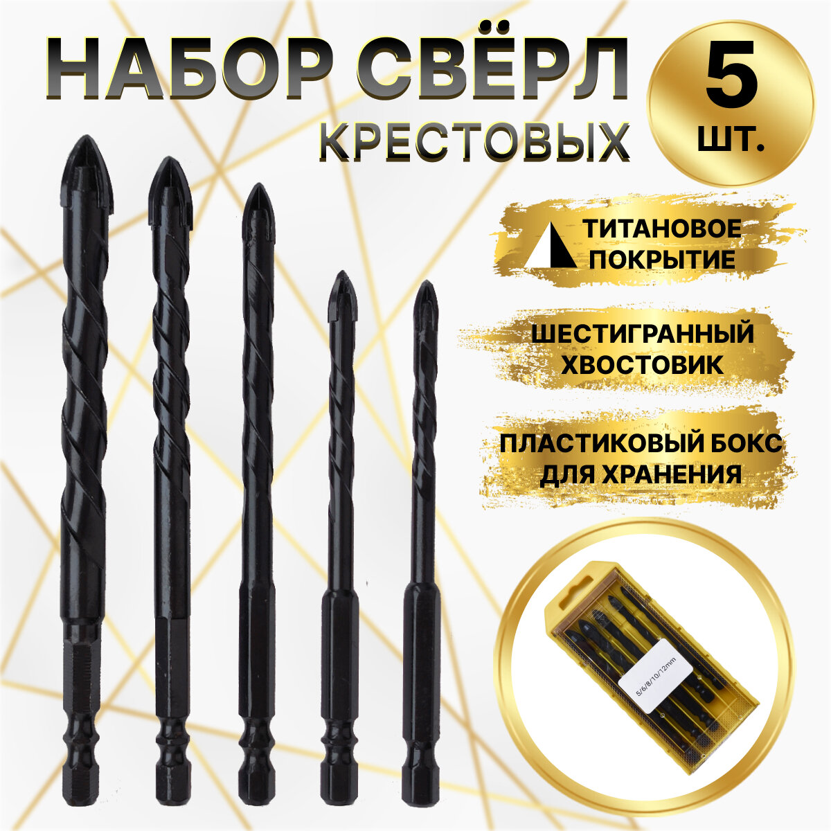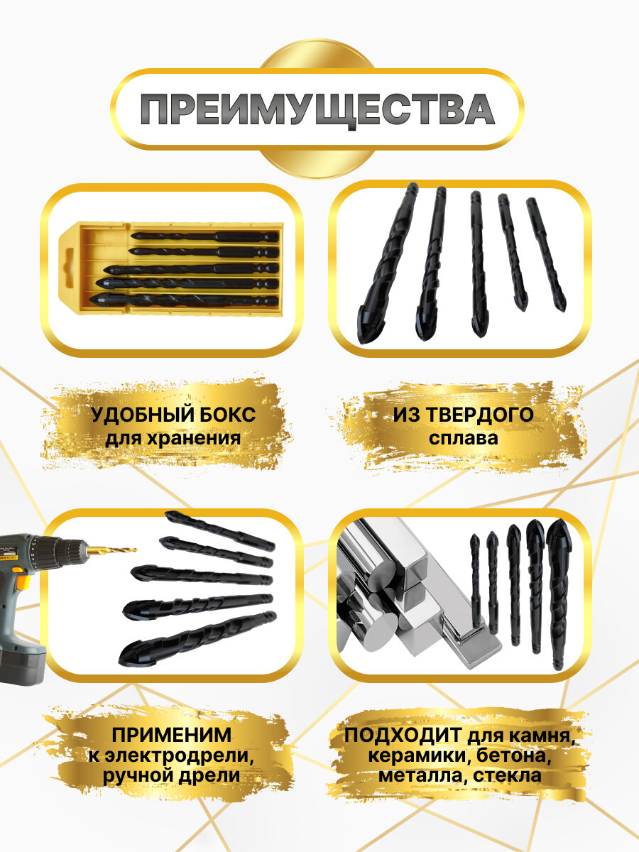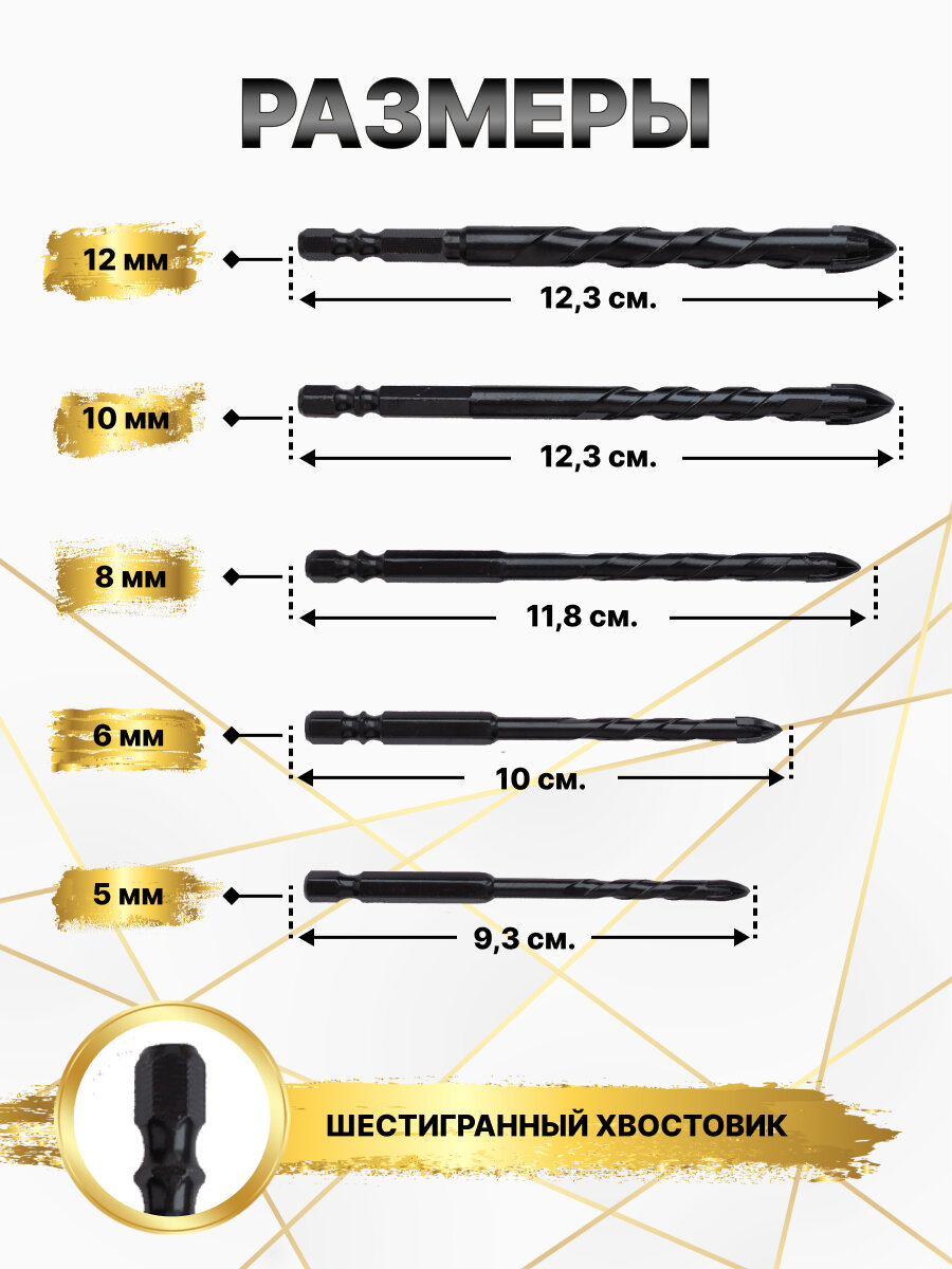 Набор сверл для камня, керамики, бетона, металла, стекла, размер 5/6/8/10/12 мм, 5 шт. Чёрные интересное: