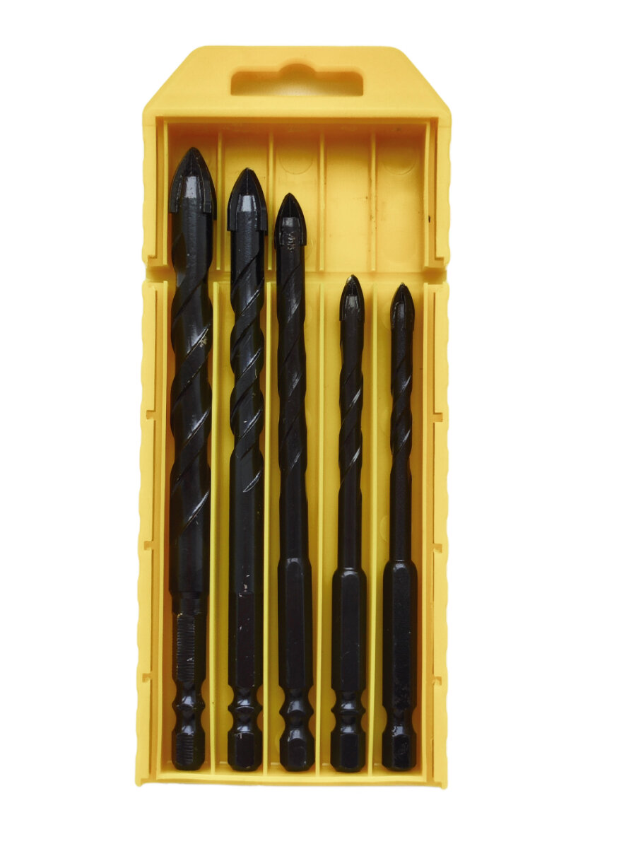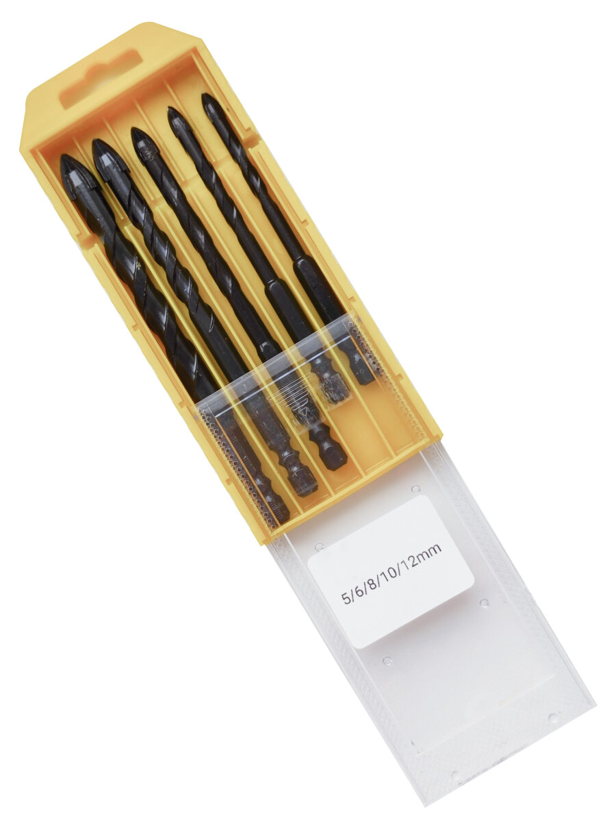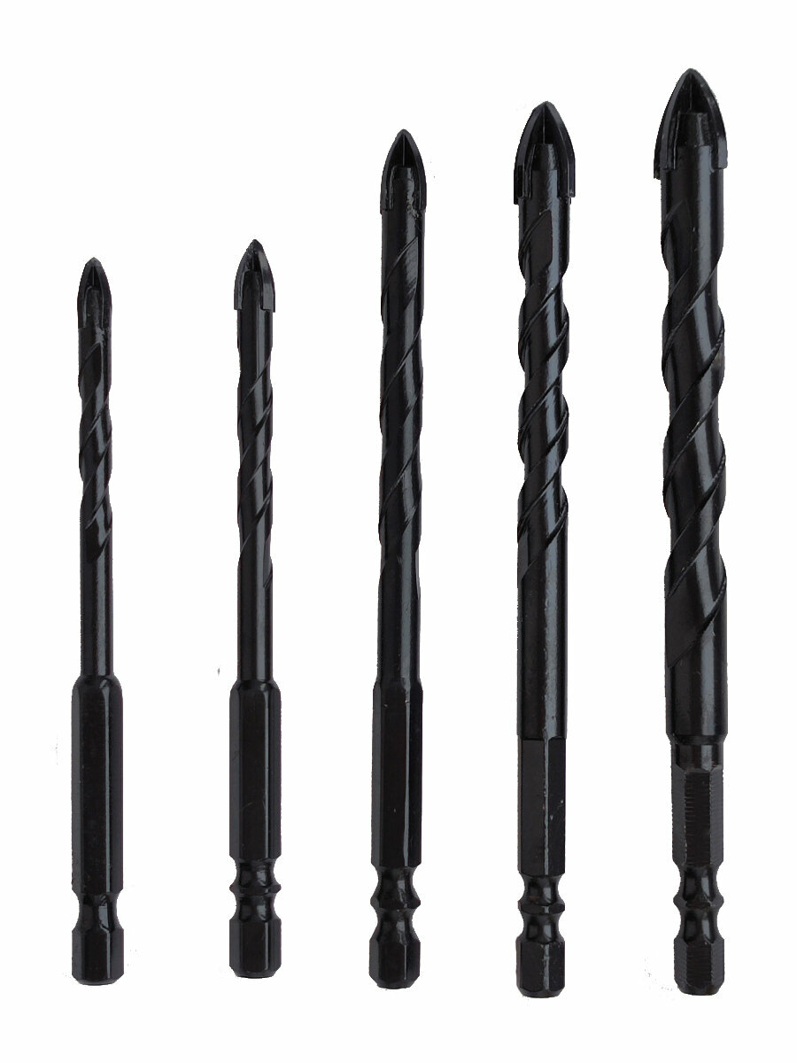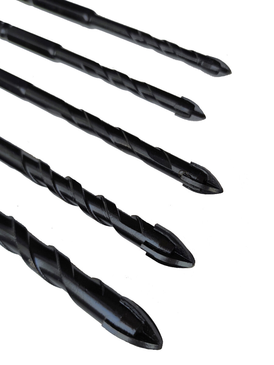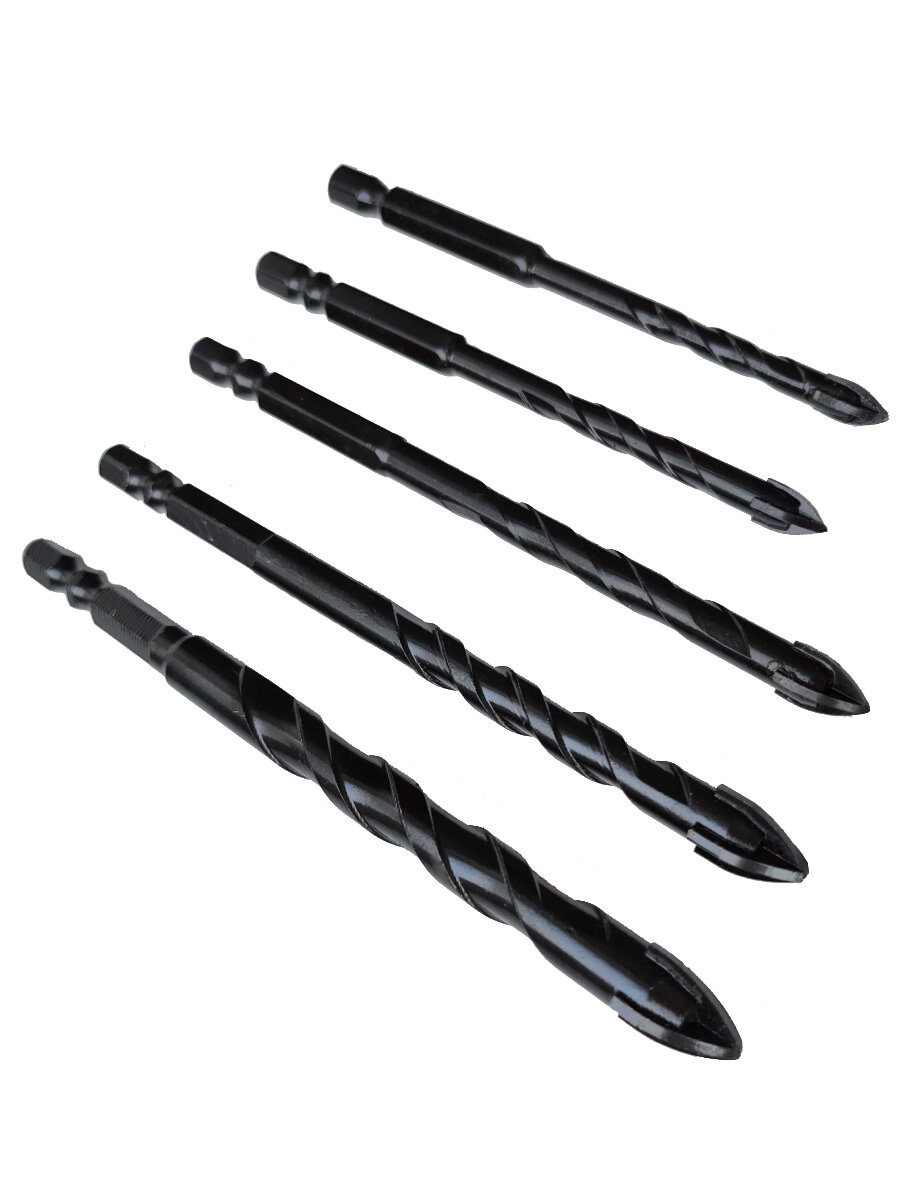 Купить Набор сверл для камня, керамики, бетона, металла, стекла, размер 5/6/8/10/12 мм, 5 шт. Чёрные