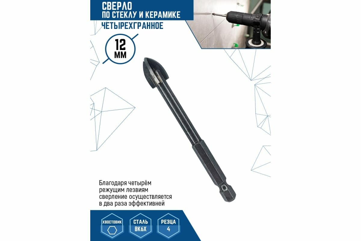 vertextools сверло ПО стеклу И керамике четырехгранное 12ММ 335-04-12 интересное: