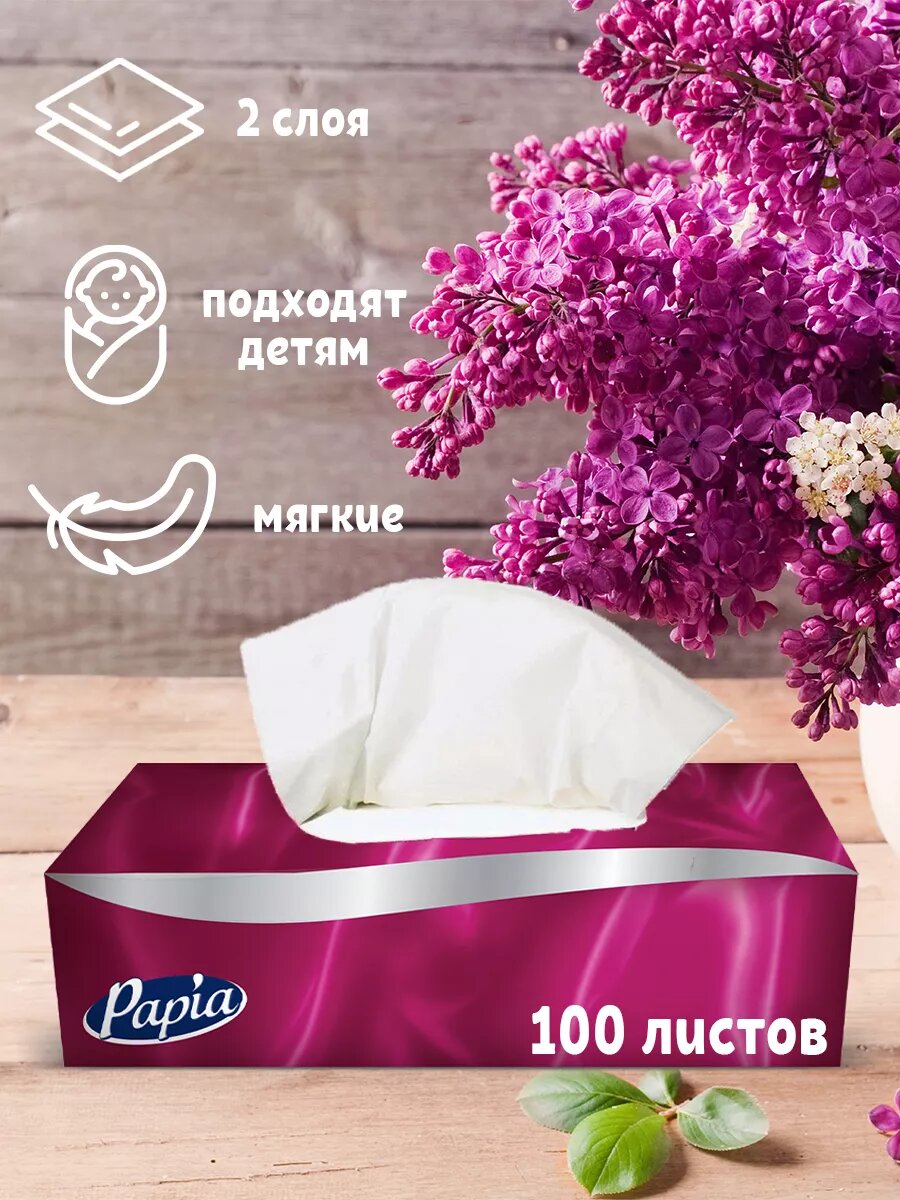PAPIA Салфетки в коробках 2 слоя х 100 штук с голограммой (Экспорт)