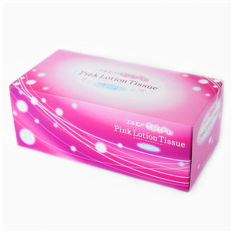 Cалфетки бумажные с коэнзимом Q10, двухслойные, розовые, Kami Shodji "PINK LOTION TISSUE", 180 шт., Япония