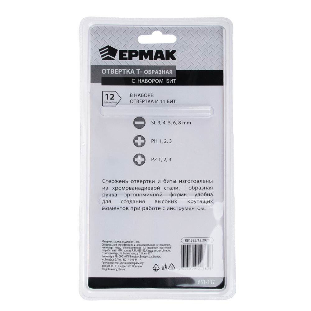 Купить Ермак Отвертка Т-образная с набором бит, 12 предметов