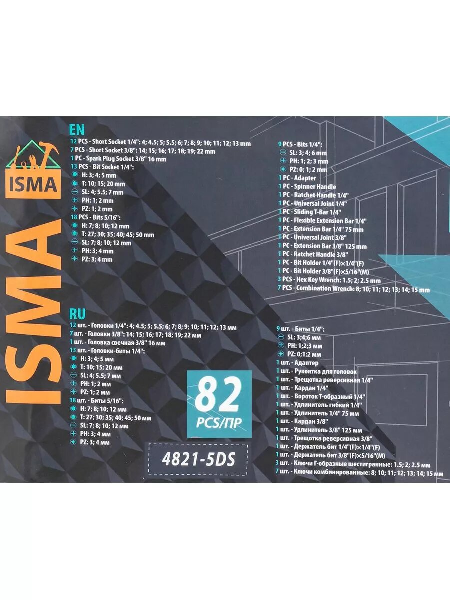 Купить Isma Набор инструментов 82 пр. ISMA-4821-5DS-м(52674)