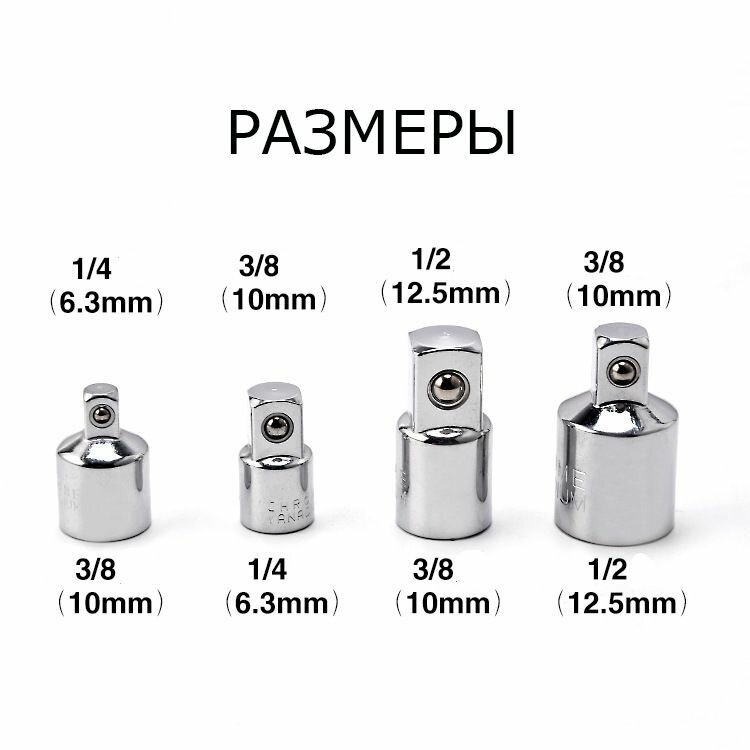 Набор переходников адаптеров для головок 1/2, 3/8 и 1/4" 4 предмета интересное: