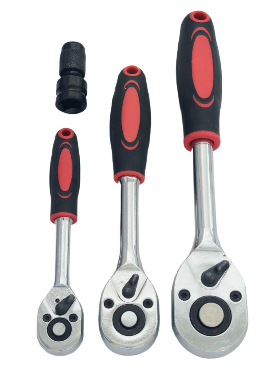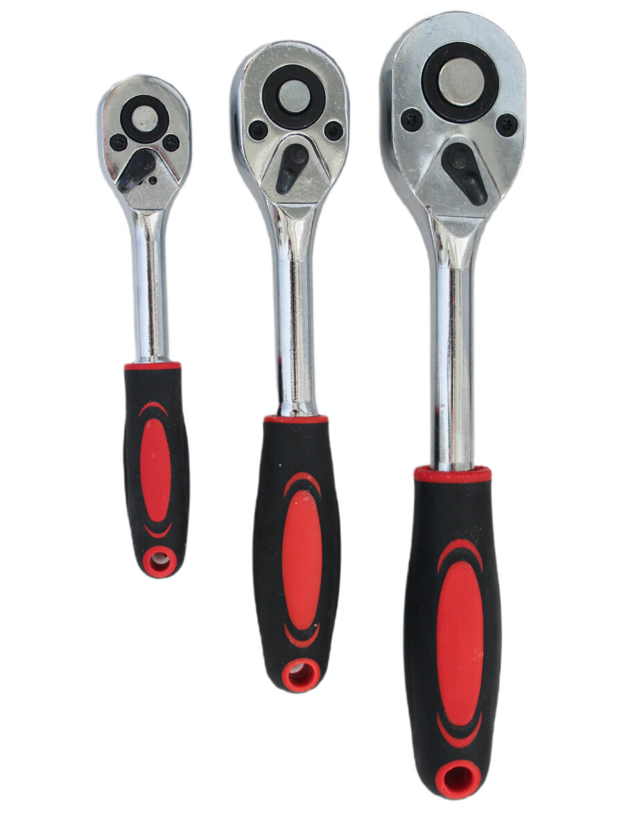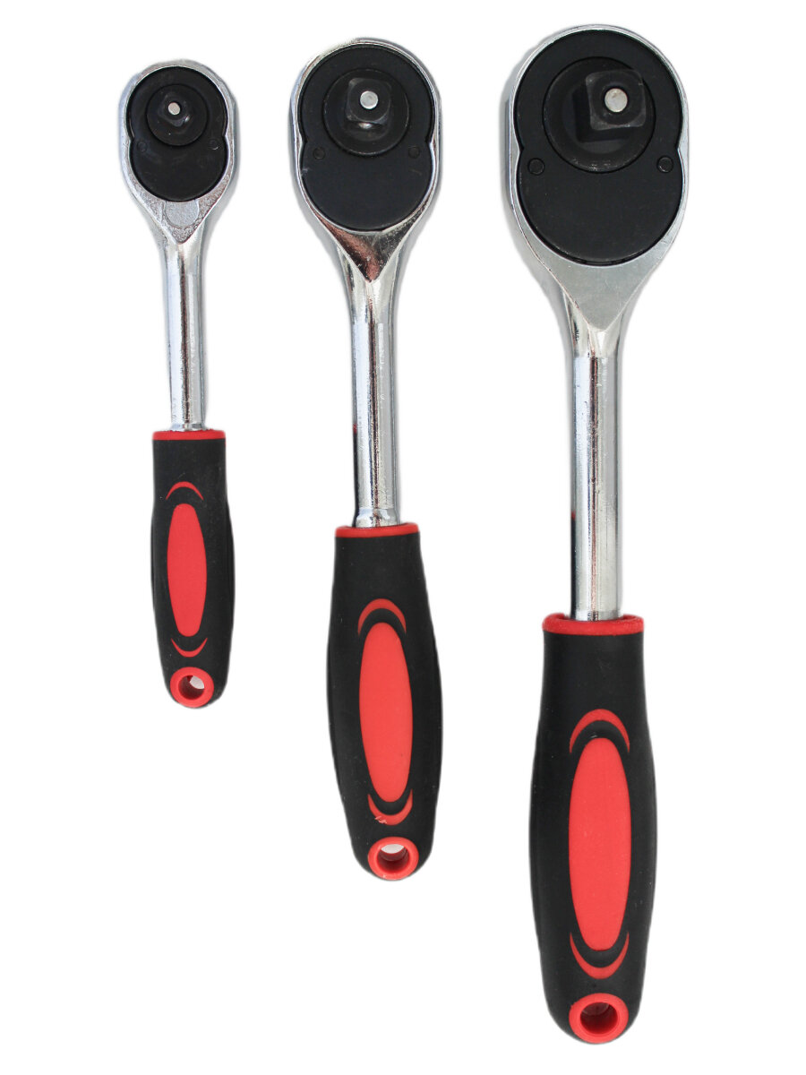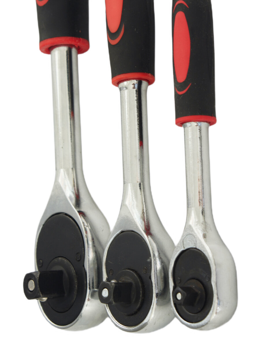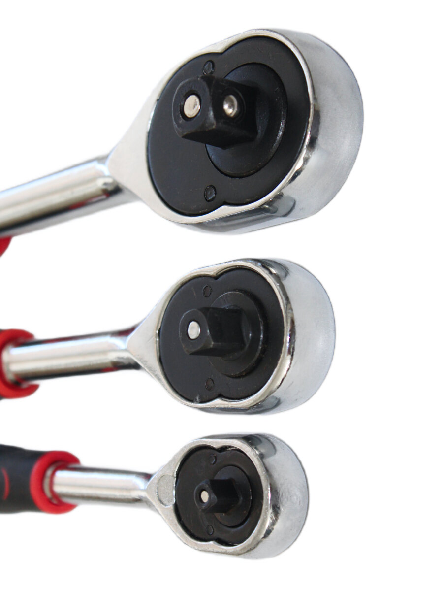 Купить Набор трещоточных реверсивных ключей 1/4", 3/8", 1/2" с двухкомпонентными ручками