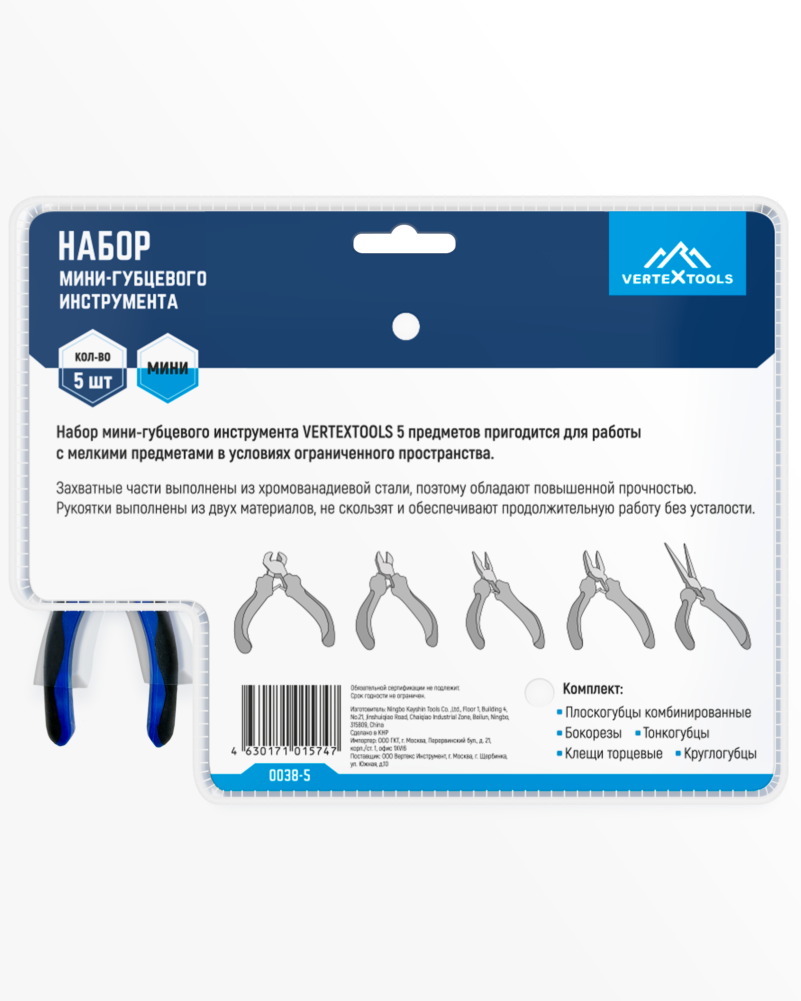 Набор мини-губцевого инструмента vertextools 5 предметов 0038-5
