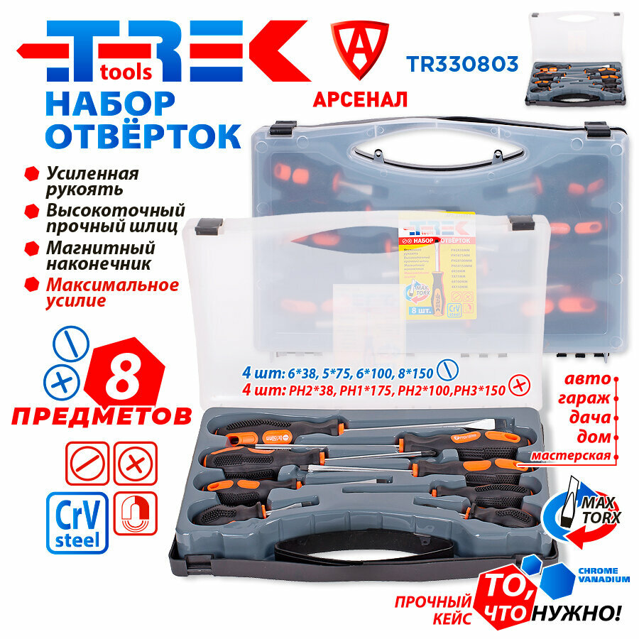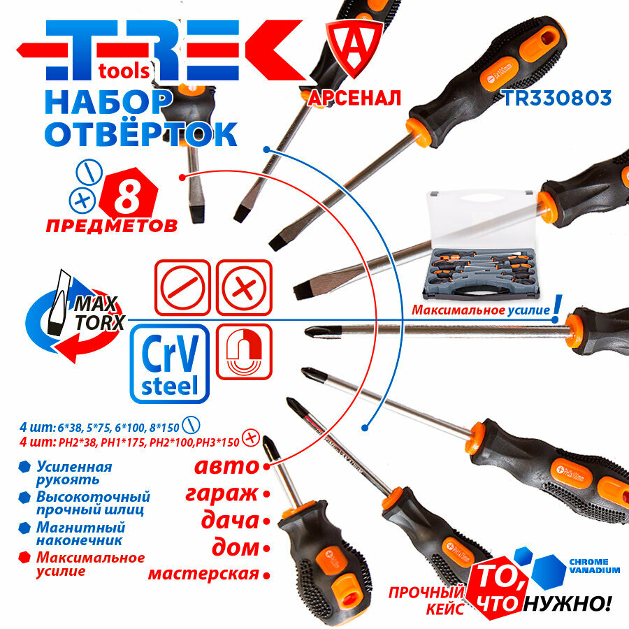 Набор отверток TREK 8 штук (4 шлиц.+ 4 крест.) в кейсе, TR330803 интересное: