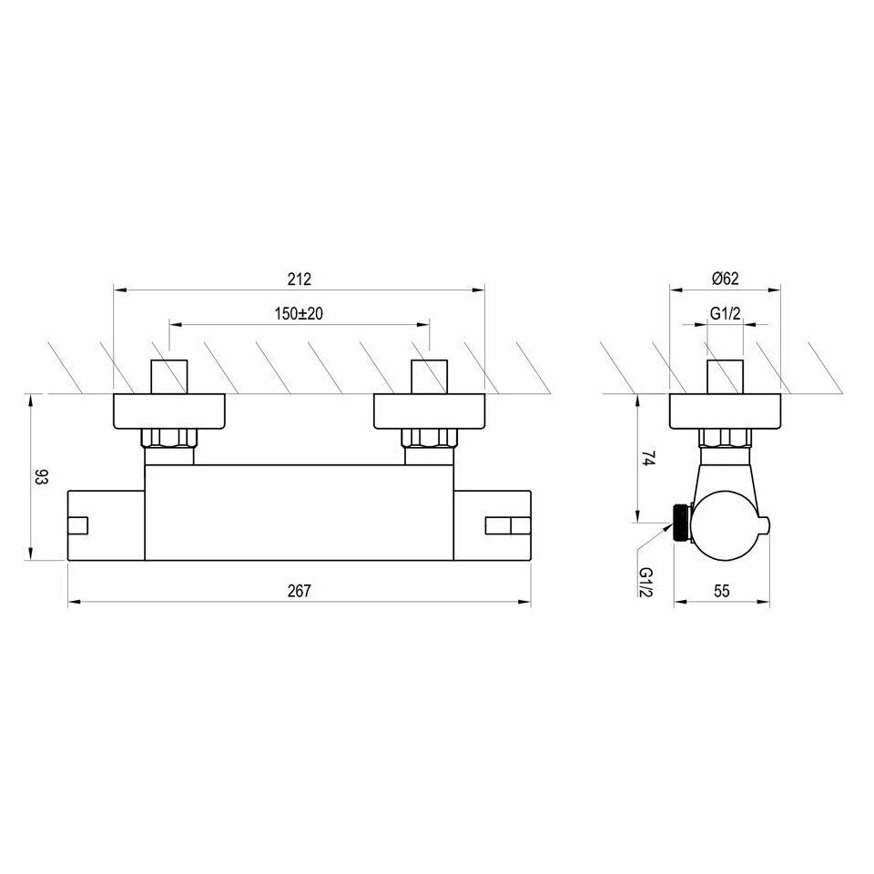 Termo, настенный смеситель без излива, без лейки, термостат, латунный , хром, арт. X070051, Ravak