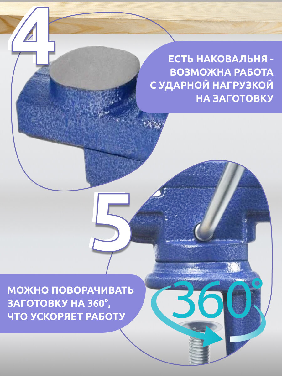 Настольные усиленные тиски с наковальней 70 мм поворотные синие интересное: