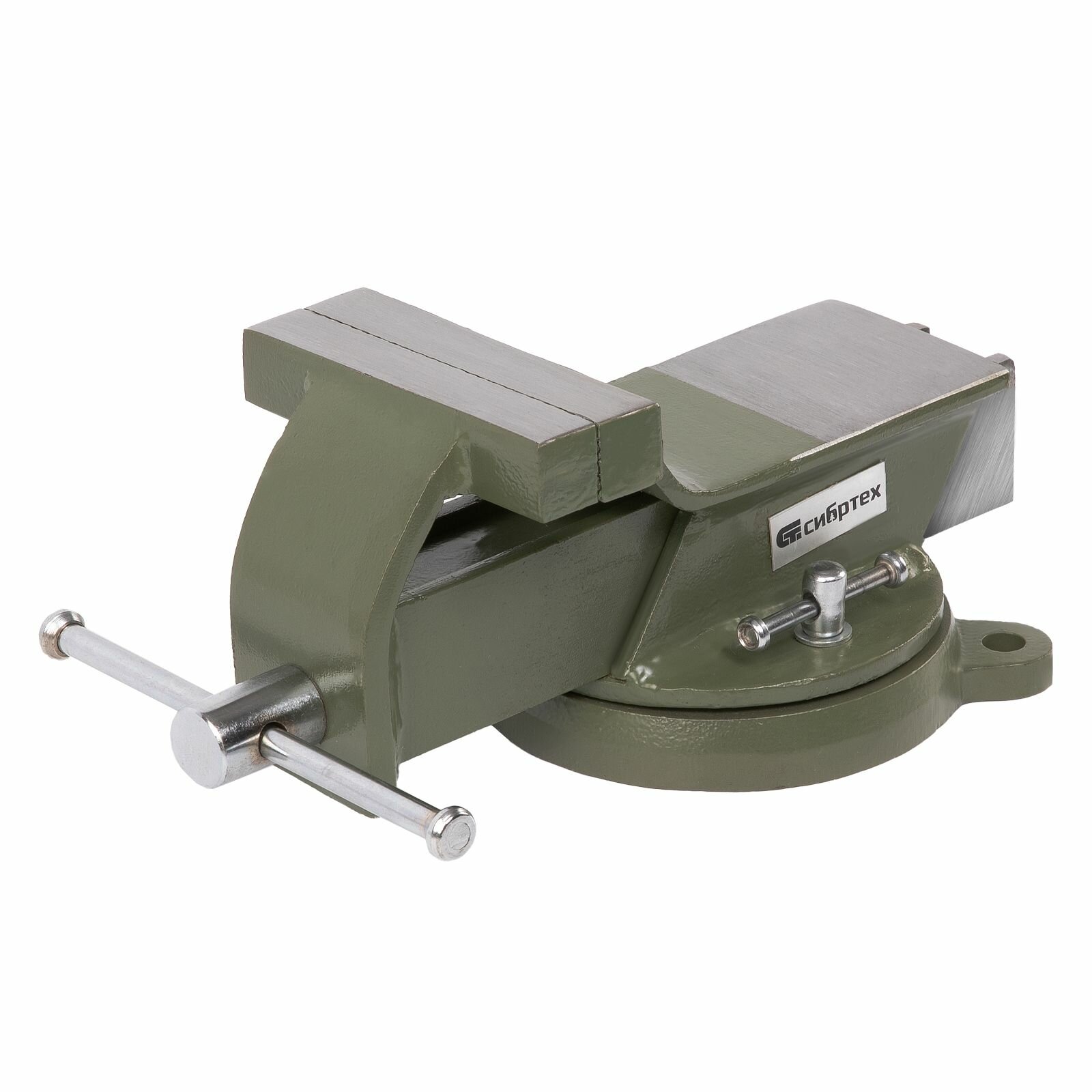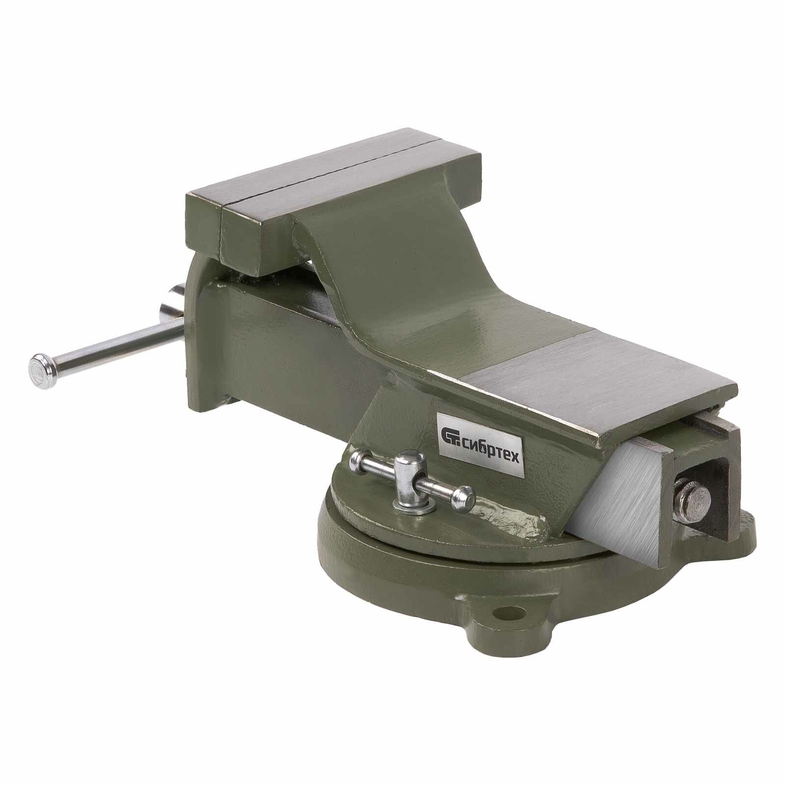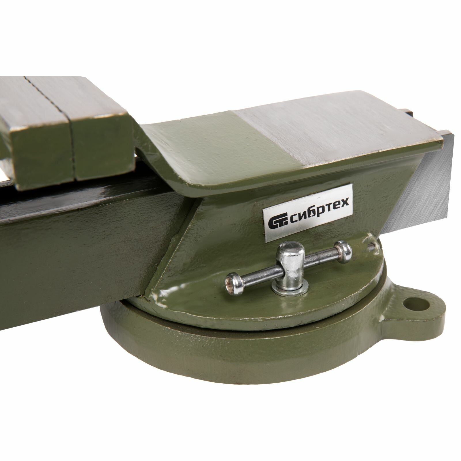 Тиски слесарные поворотные Сибртех, 100 мм ширина губок и 100 мм рабочий ход, стальной корпус и чугунное основание 18618