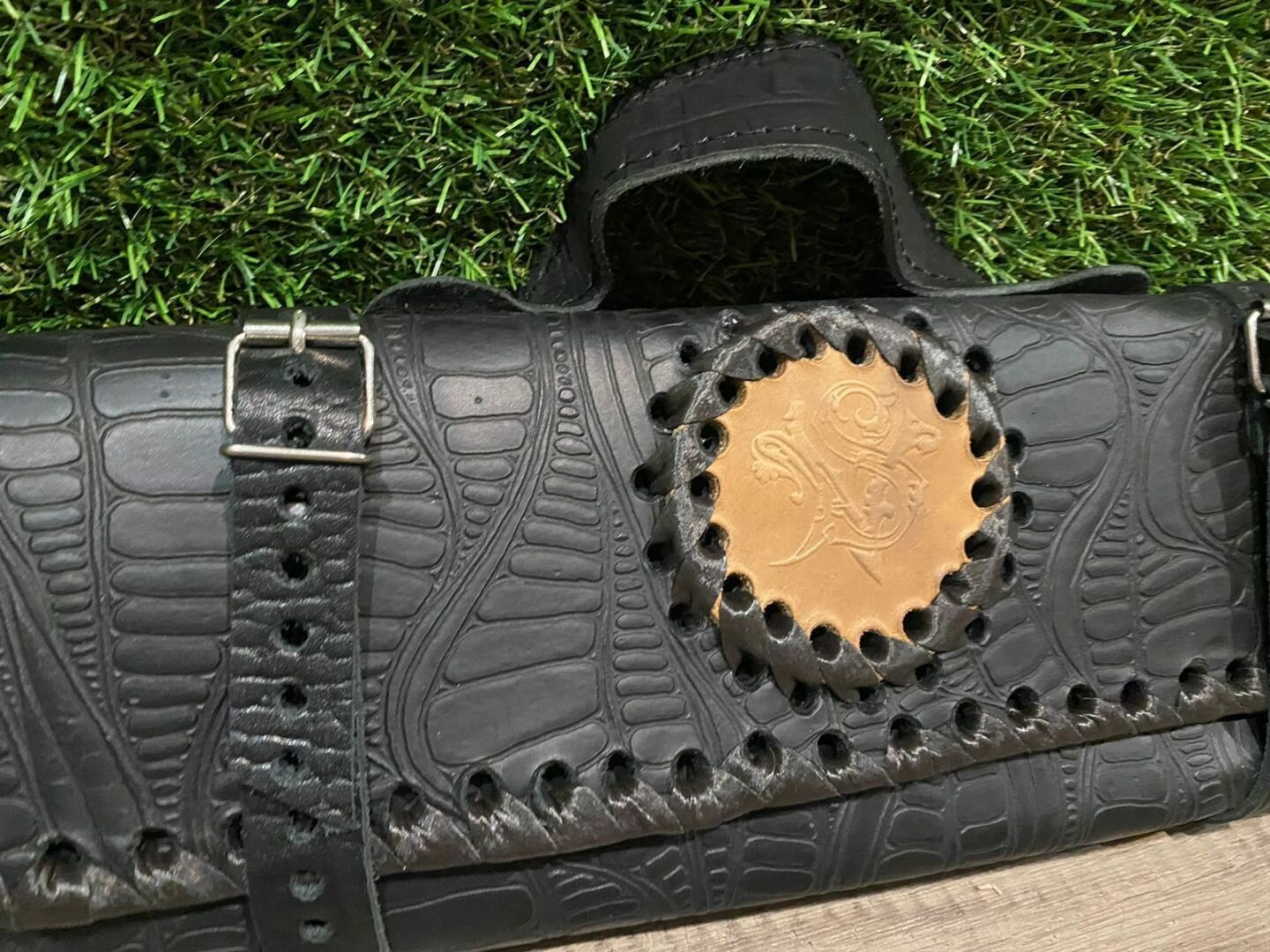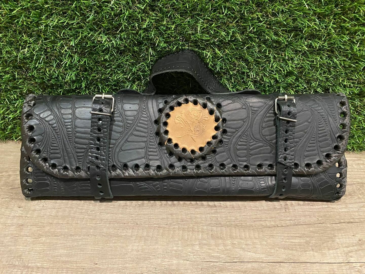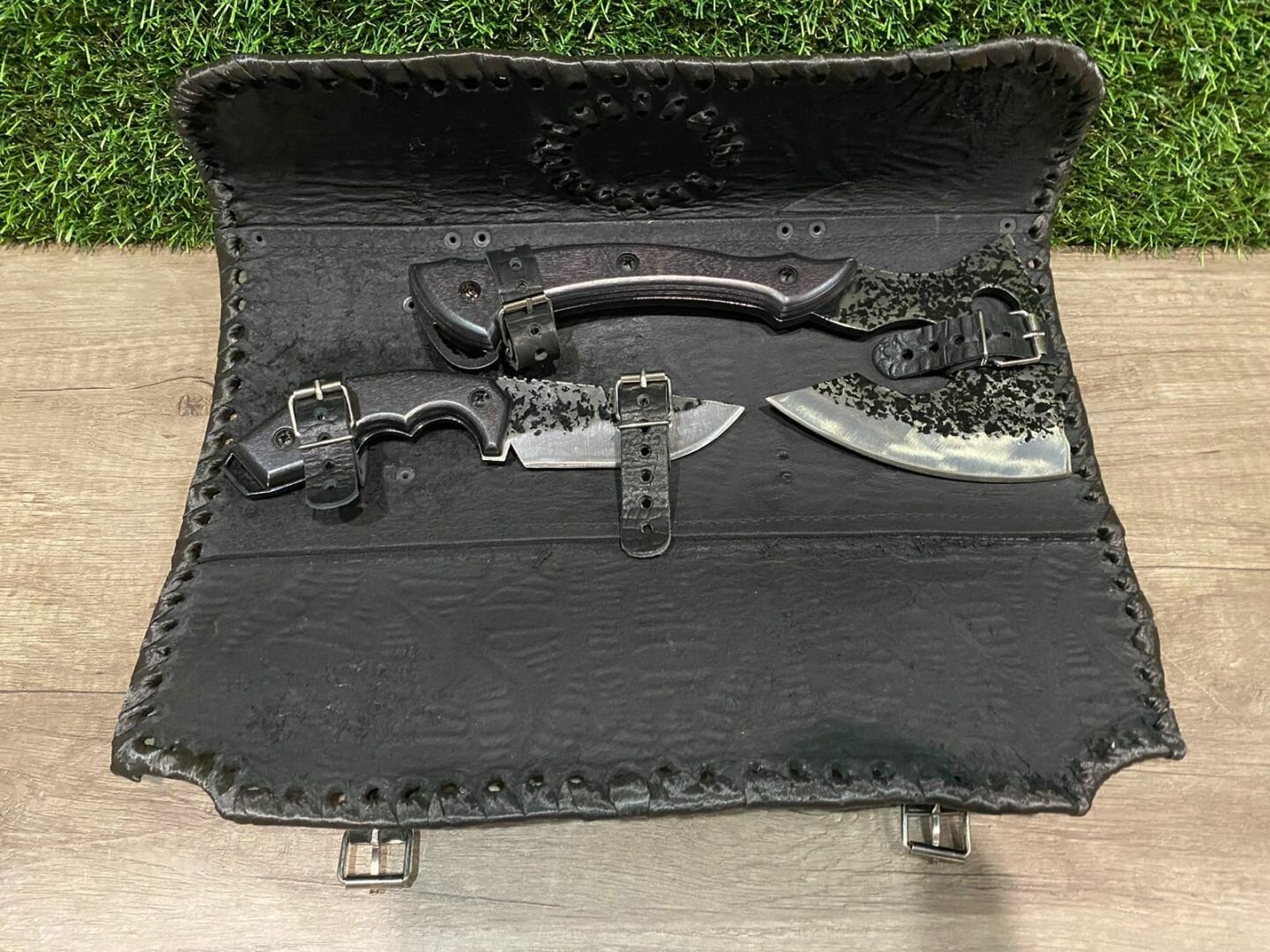 Купить Сумка-смотка из натуральной кожи с топором и ножом (черная)