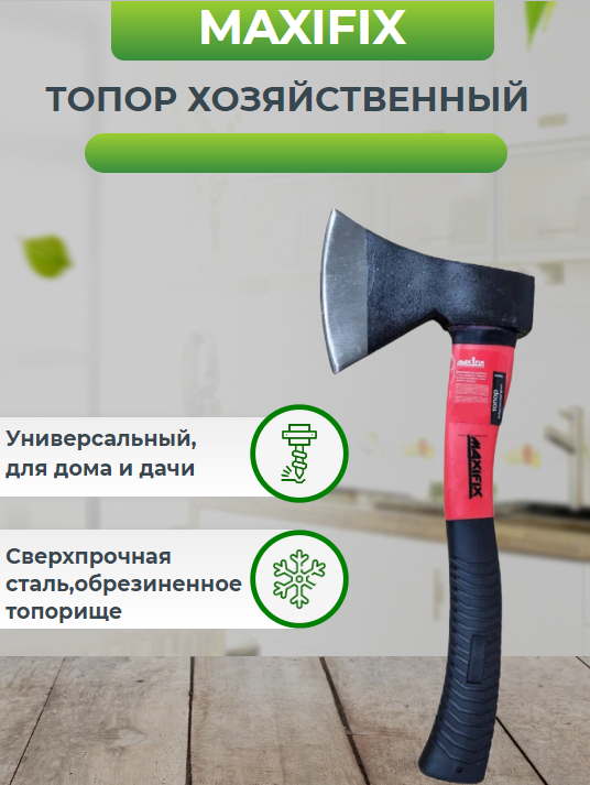 Топор MAXIFIX 900г., стеклопластиковая, обрезиненная ручка, плотницкий/столярный/универсальный интересное: