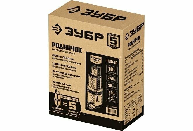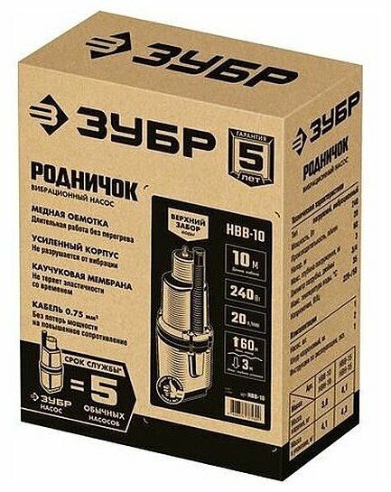 ЗУБР 10 м провод, с верхним забором воды, насос вибрационный Родничок-В НВВ-10 Мастер