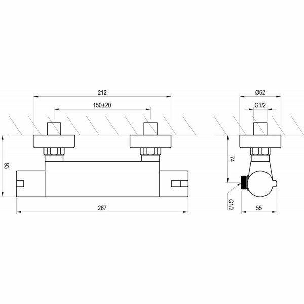 Termo, настенный смеситель без излива, без лейки, термостат, латунный , хром, арт. X070051, Ravak