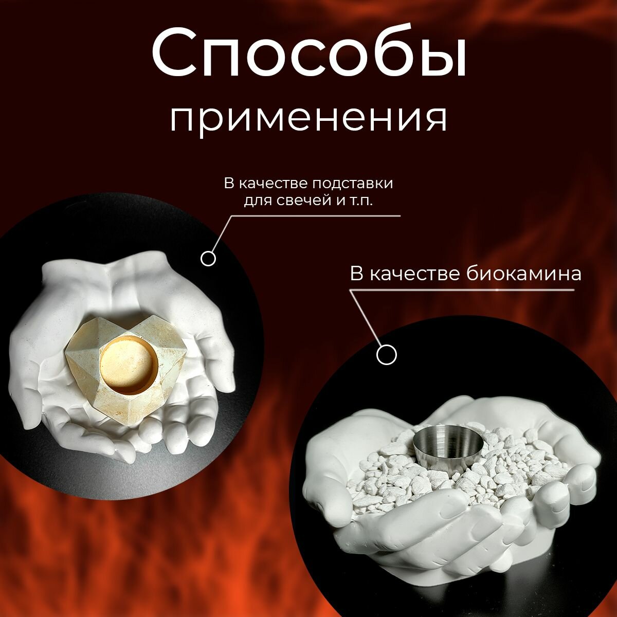 СохранитьБиокамин "Руки Давида", напольная и настольная установка, белый гипс интересное: