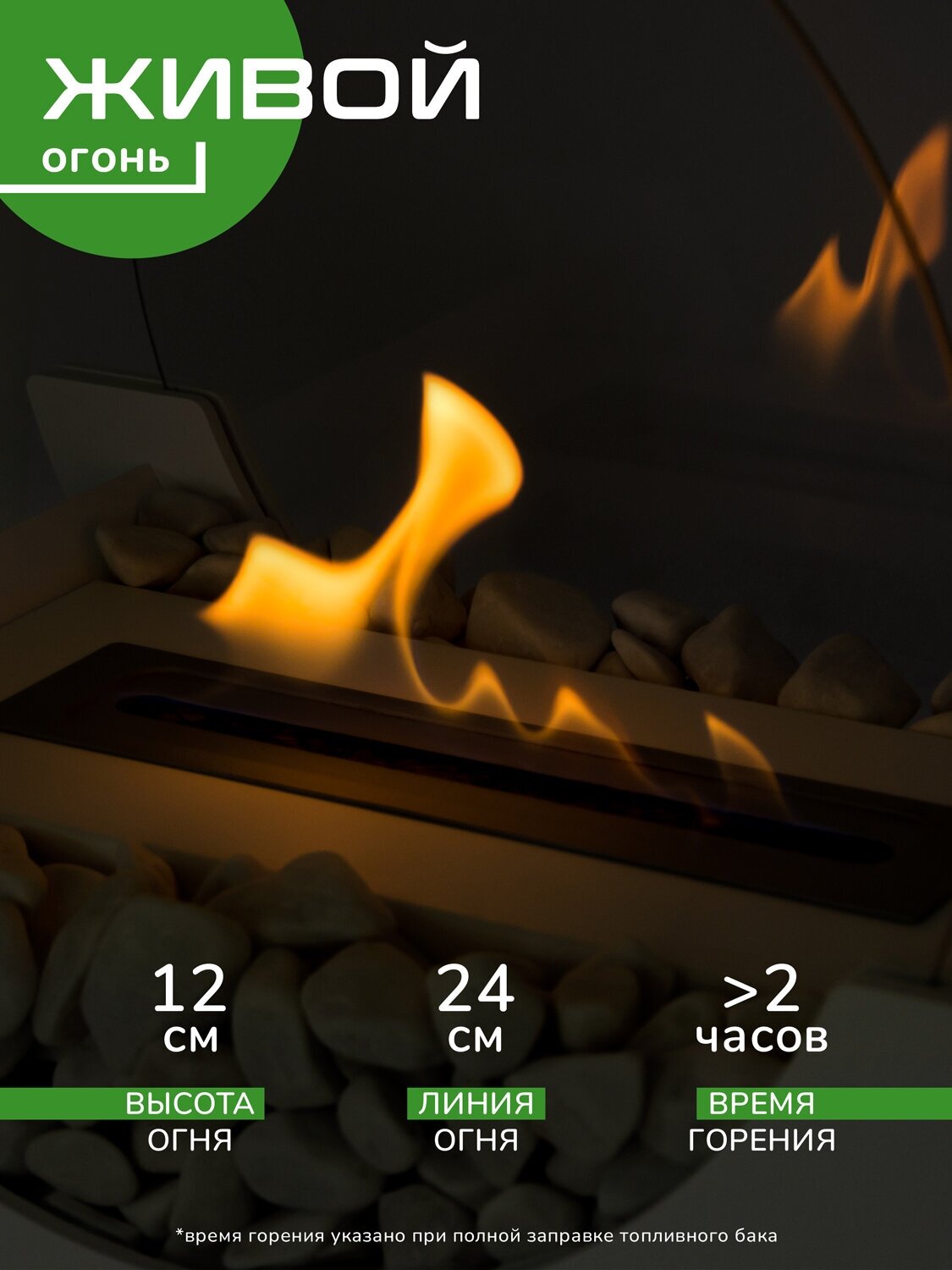 | Особенности | эффект живого огня |