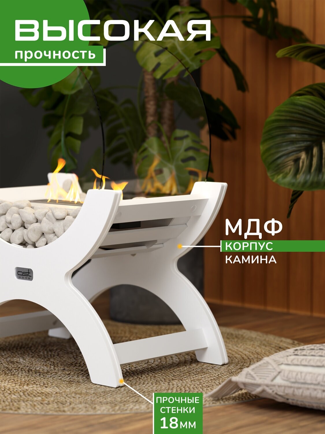 Биокамин "Ethnic" c закаленными стеклами, камин для дома напольный декоративный